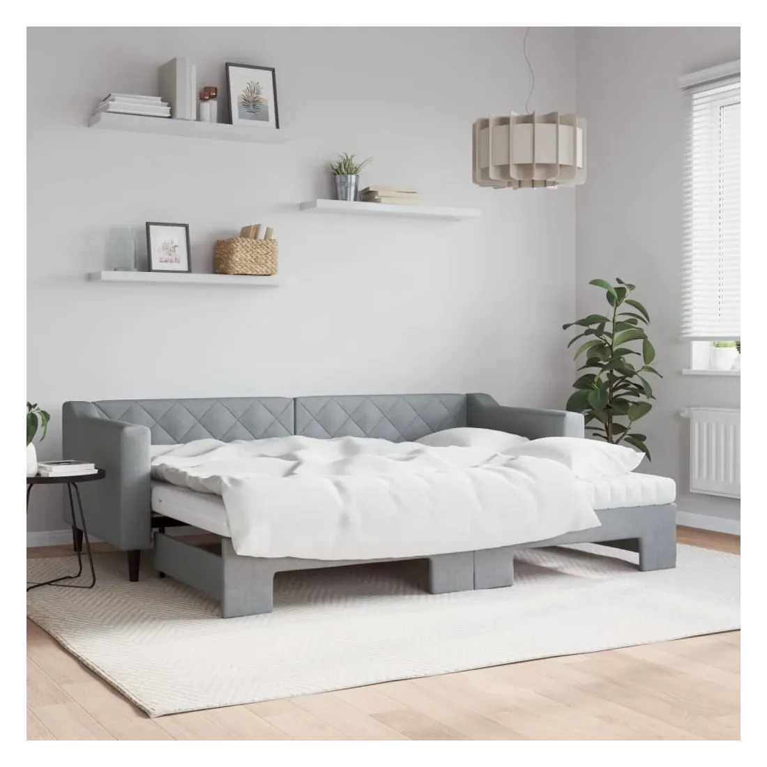 Ce lit de repos 2 en 1 avec lit gigogne, servant à la fois de canapé et de lit, constitue un supplément pratique et accrocheur à votre salon ou chambre à coucher. Lit de repos polyvalent : le canapé-lit fonctionne comme un canapé pendant la journée et se transforme facilement en lit double la nuit en retirant le lit gigogne, offrant une solution pratique pour accueillir des invités et maximiser l'espace.Matelas en mousse confortable : ce lit est fourni avec deux matelas en mousse pour un soutien maximal et un confort optimal.Tissu durable et construction solide : ce canapé-lit a une structure robuste en bois et en métal et est recouvert d'un tissu durable et confortable.Design moderne : le canapé-lit a un design moderne qui présente des lignes épurées, un aspect minimaliste, et ajoutera un style moderne à votre intérieur !