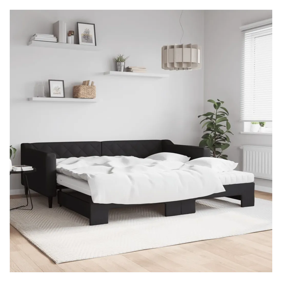 Ce lit de repos 2 en 1 avec lit gigogne, servant à la fois de canapé et de lit, constitue un supplément pratique et accrocheur à votre salon ou chambre à coucher. Lit de repos polyvalent : le canapé-lit fonctionne comme un canapé pendant la journée et se transforme facilement en lit double la nuit en retirant le lit gigogne, offrant une solution pratique pour accueillir des invités et maximiser l'espace.Matelas en mousse confortable : ce lit est fourni avec deux matelas en mousse pour un soutien maximal et un confort optimal.Tissu durable et construction solide : ce canapé-lit a une structure robuste en bois et en métal et est recouvert d'un tissu durable et confortable.Design moderne : le canapé-lit a un design moderne qui présente des lignes épurées, un aspect minimaliste, et ajoutera un style moderne à votre intérieur !