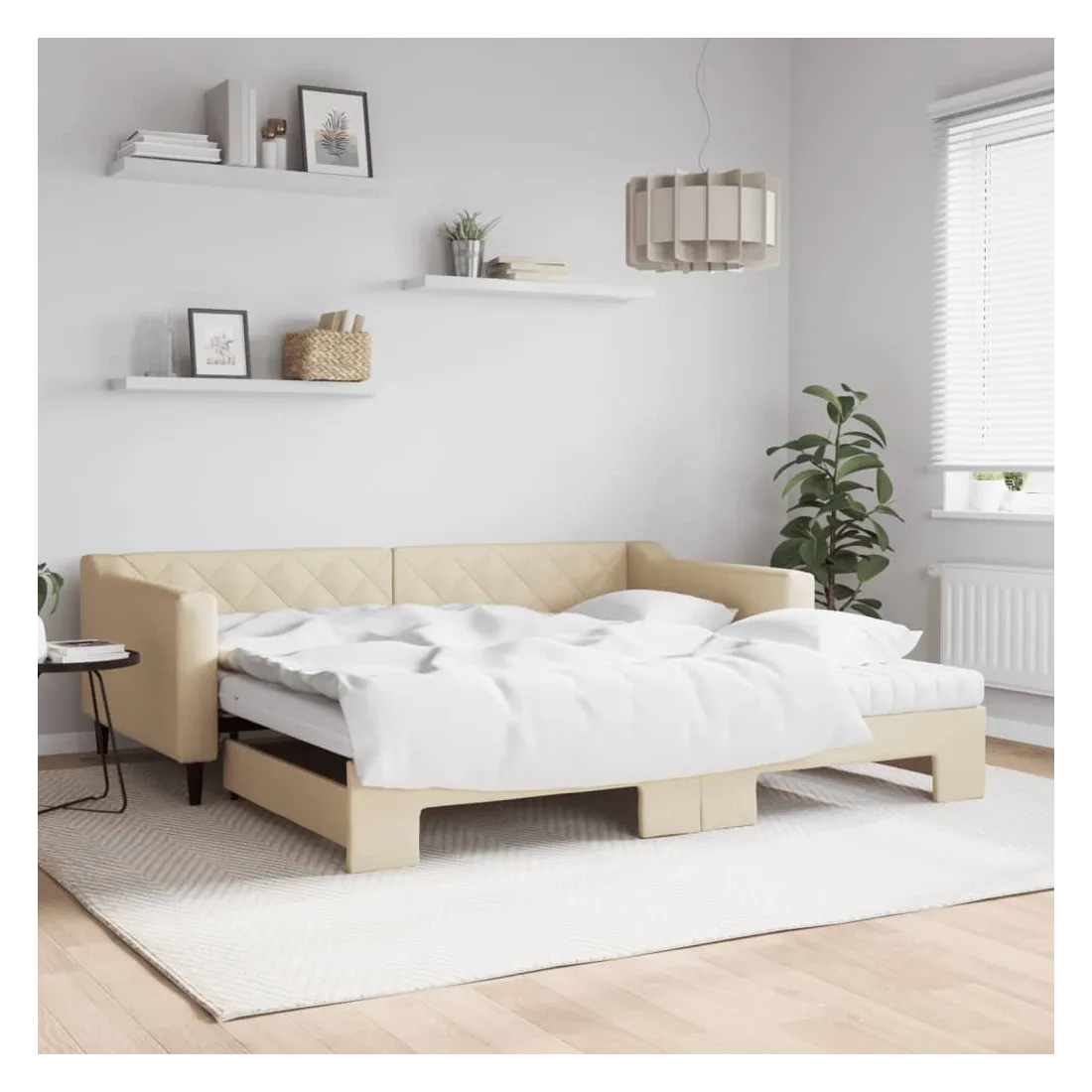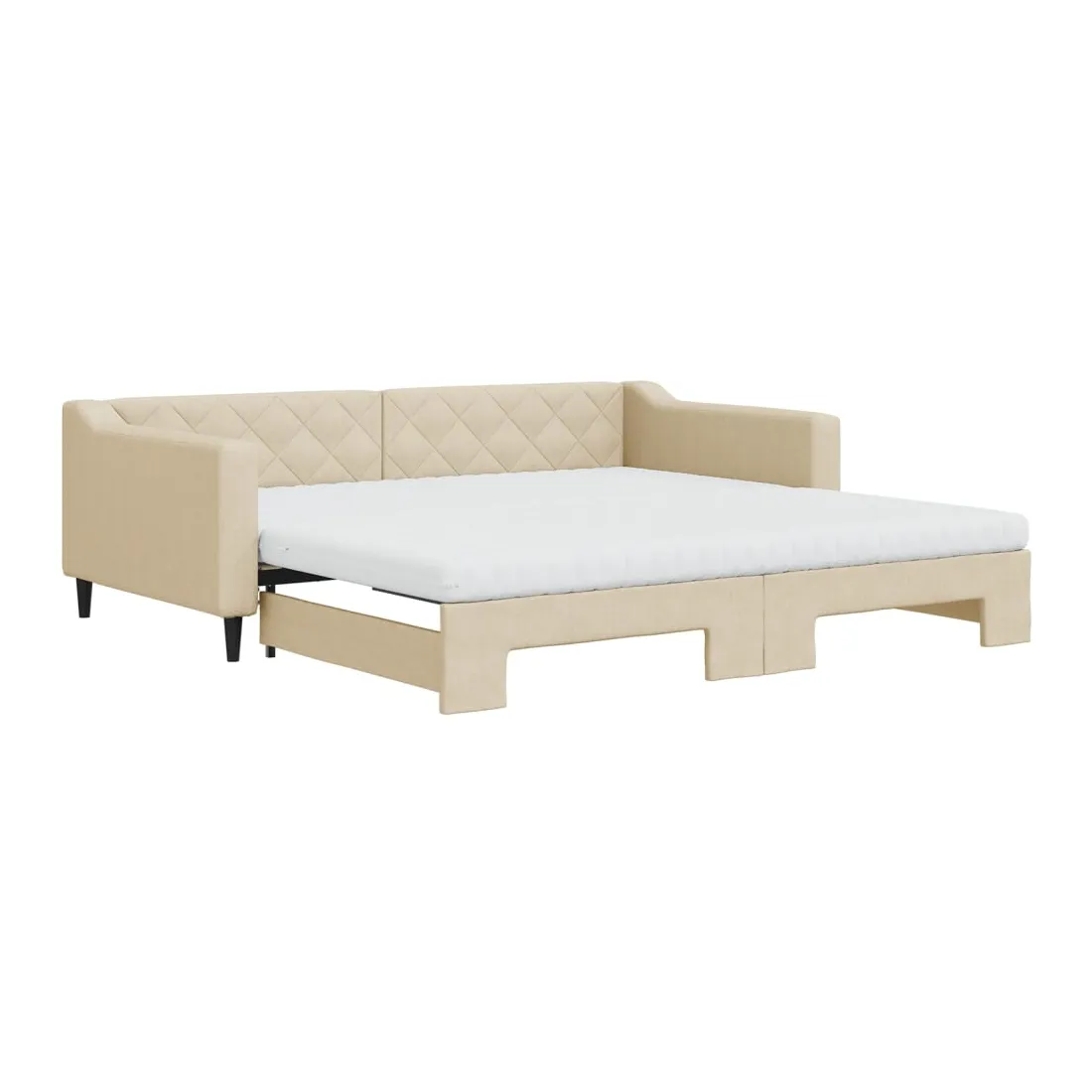 Ce lit de repos 2 en 1 avec lit gigogne, servant à la fois de canapé et de lit, constitue un supplément pratique et accrocheur à votre salon ou chambre à coucher. Lit de repos polyvalent : le canapé-lit fonctionne comme un canapé pendant la journée et se transforme facilement en lit double la nuit en retirant le lit gigogne, offrant une solution pratique pour accueillir des invités et maximiser l'espace.Matelas en mousse confortable : ce lit est fourni avec deux matelas en mousse pour un soutien maximal et un confort optimal.Tissu durable et construction solide : ce canapé-lit a une structure robuste en bois et en métal et est recouvert d'un tissu durable et confortable.Design moderne : le canapé-lit a un design moderne qui présente des lignes épurées, un aspect minimaliste, et ajoutera un style moderne à votre intérieur !