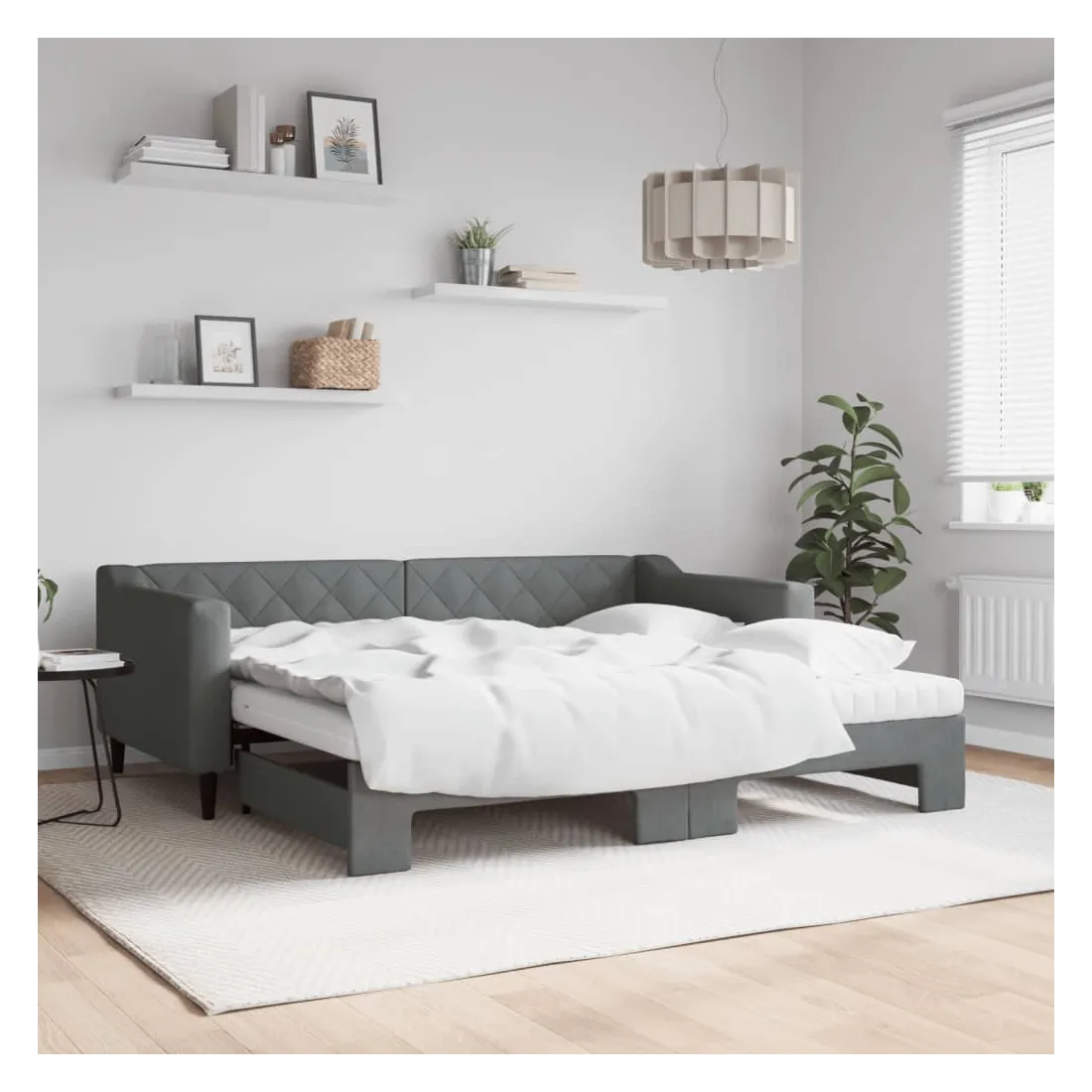 Ce lit de repos 2 en 1 avec lit gigogne, servant à la fois de canapé et de lit, constitue un supplément pratique et accrocheur à votre salon ou chambre à coucher. Lit de repos polyvalent : le canapé-lit fonctionne comme un canapé pendant la journée et se transforme facilement en lit double la nuit en retirant le lit gigogne, offrant une solution pratique pour accueillir des invités et maximiser l'espace.Matelas en mousse confortable : ce lit est fourni avec deux matelas en mousse pour un soutien maximal et un confort optimal.Tissu durable et construction solide : ce canapé-lit a une structure robuste en bois et en métal et est recouvert d'un tissu durable et confortable.Design moderne : le canapé-lit a un design moderne qui présente des lignes épurées, un aspect minimaliste, et ajoutera un style moderne à votre intérieur !