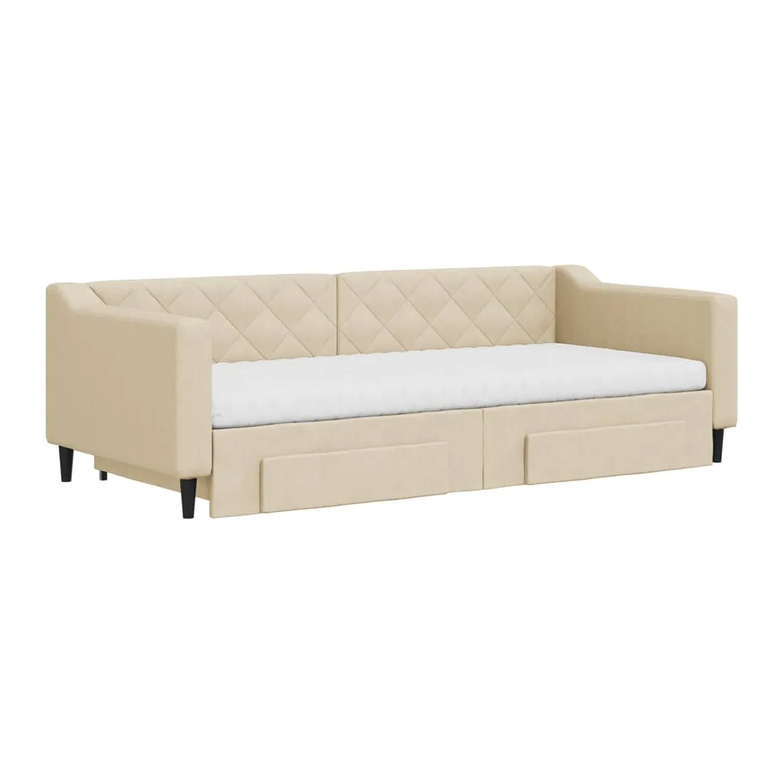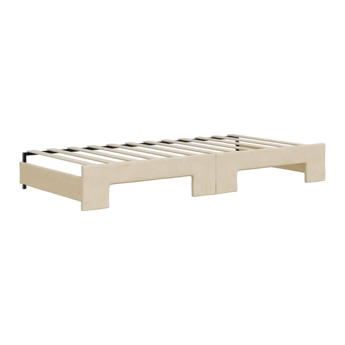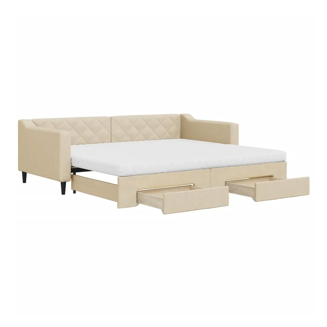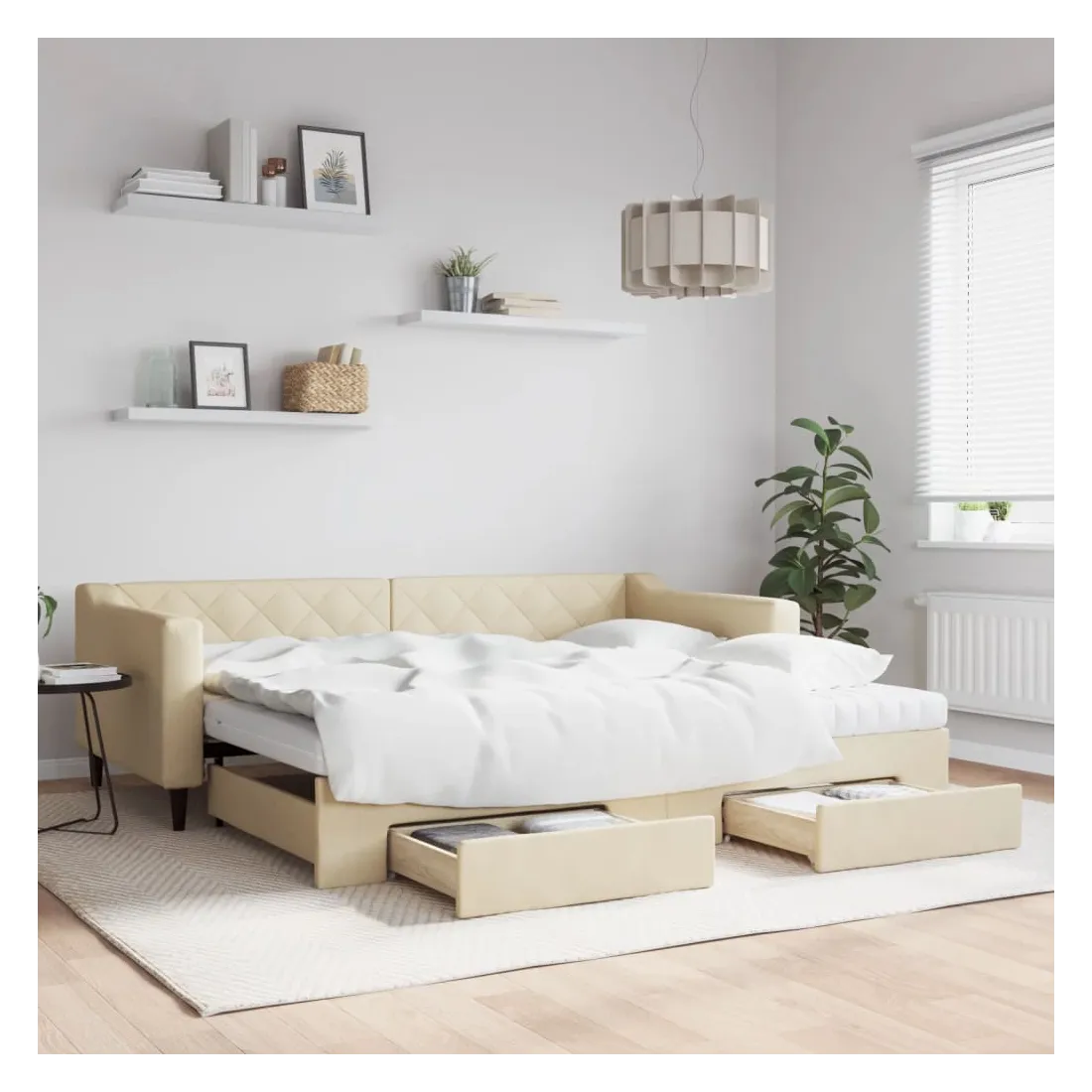 Ce lit de repos 2 en 1 avec lit gigogne, servant à la fois de canapé et de lit, constitue un supplément pratique et accrocheur à votre salon ou chambre à coucher. Lit de repos polyvalent : le canapé-lit fonctionne comme un canapé pendant la journée et se transforme facilement en lit double la nuit en retirant le lit gigogne, offrant une solution pratique pour accueillir des invités et maximiser l'espace. Grand espace de rangement : ce lit d'appoint dispose de deux tiroirs à roulettes qui offrent suffisamment d'espace pour ranger vos vêtements, chaussettes, jouets, coussins, etc. Matelas en mousse confortable : ce lit est fourni avec deux matelas en mousse pour un soutien maximal et un confort optimal. Tissu durable et construction solide : ce canapé-lit a une structure robuste en bois et en métal et est recouvert d'un tissu durable et confortable.
