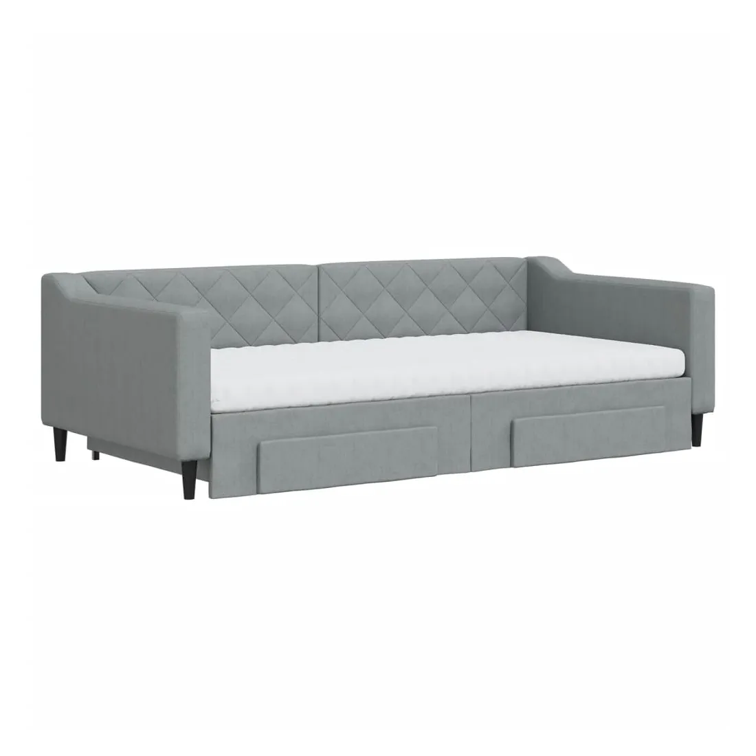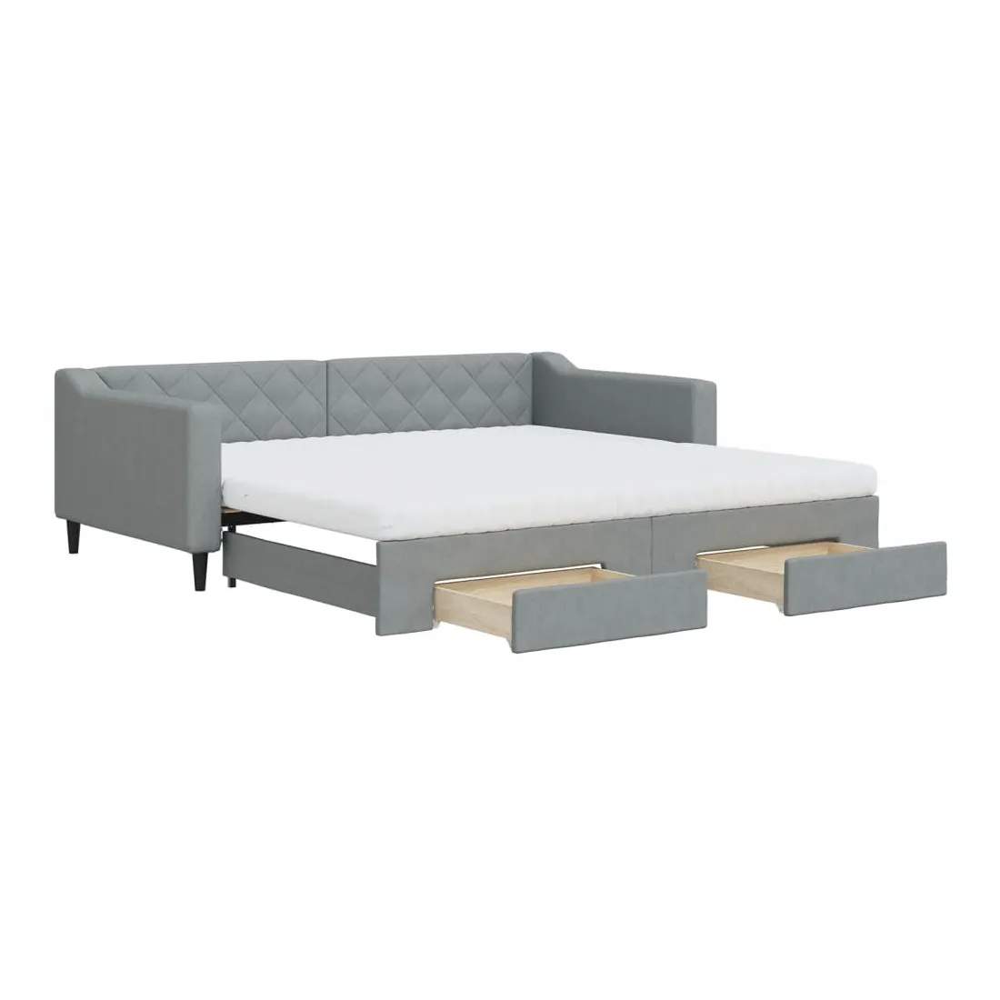 Ce lit de repos 2 en 1 avec lit gigogne, servant à la fois de canapé et de lit, constitue un supplément pratique et accrocheur à votre salon ou chambre à coucher. Lit de repos polyvalent : le canapé-lit fonctionne comme un canapé pendant la journée et se transforme facilement en lit double la nuit en retirant le lit gigogne, offrant une solution pratique pour accueillir des invités et maximiser l'espace. Grand espace de rangement : ce lit d'appoint dispose de deux tiroirs à roulettes qui offrent suffisamment d'espace pour ranger vos vêtements, chaussettes, jouets, coussins, etc. Matelas en mousse confortable : ce lit est fourni avec deux matelas en mousse pour un soutien maximal et un confort optimal. Tissu durable et construction solide : ce canapé-lit a une structure robuste en bois et en métal et est recouvert d'un tissu durable et confortable.