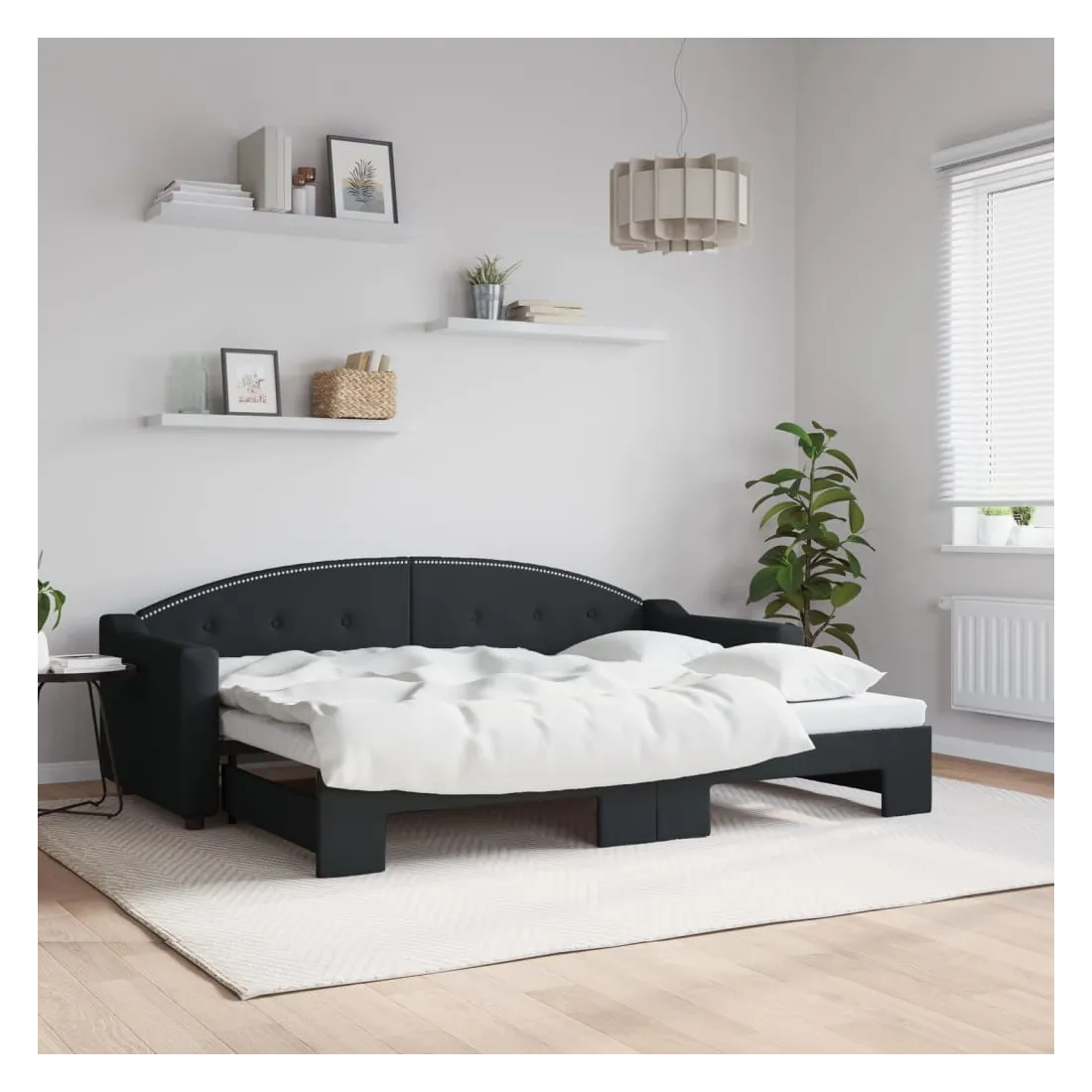 Ce lit de repos 2 en 1 avec lit gigogne, servant à la fois de canapé et de lit, constitue un supplément pratique et accrocheur à votre salon ou chambre à coucher. Lit de repos polyvalent : le canapé-lit fonctionne comme un canapé pendant la journée et se transforme facilement en lit double la nuit en retirant le lit gigogne, offrant une solution pratique pour accueillir des invités et maximiser l'espace. Tissu durable : lit d'appoint est en tissu. Le tissu présente un aspect simple et épuré tout en restant respirant et durable. Construction solide : la structure en bois et en métal du lit assure robustesse et stabilité. Bon à savoir :Les matelas ne sont pas inclus avec ce lit de repos. Nous proposons une sélection variée de matelas. Vous pouvez consulter notre boutique pour les matelas assortis.
