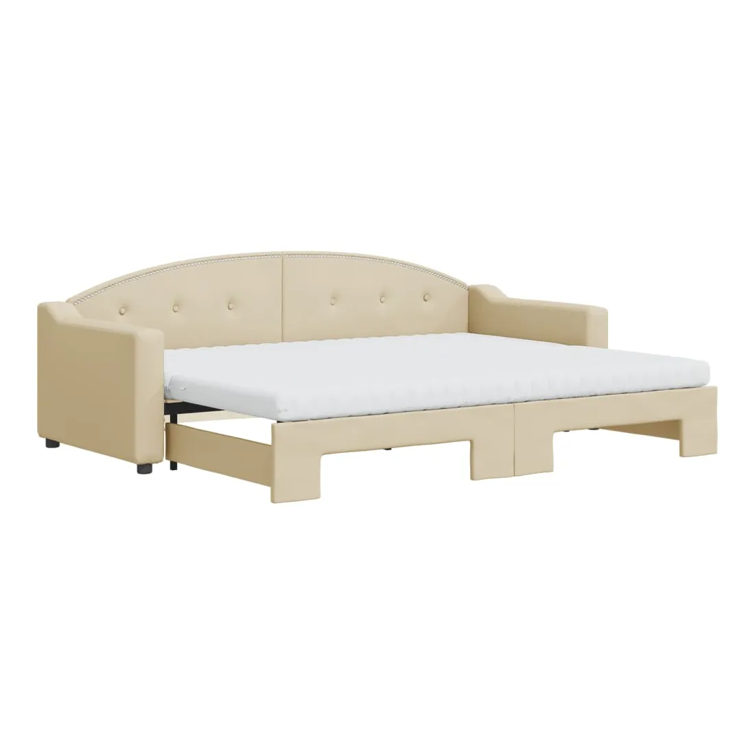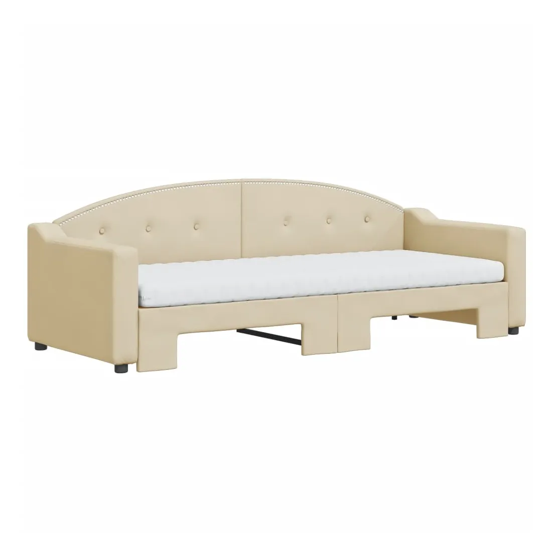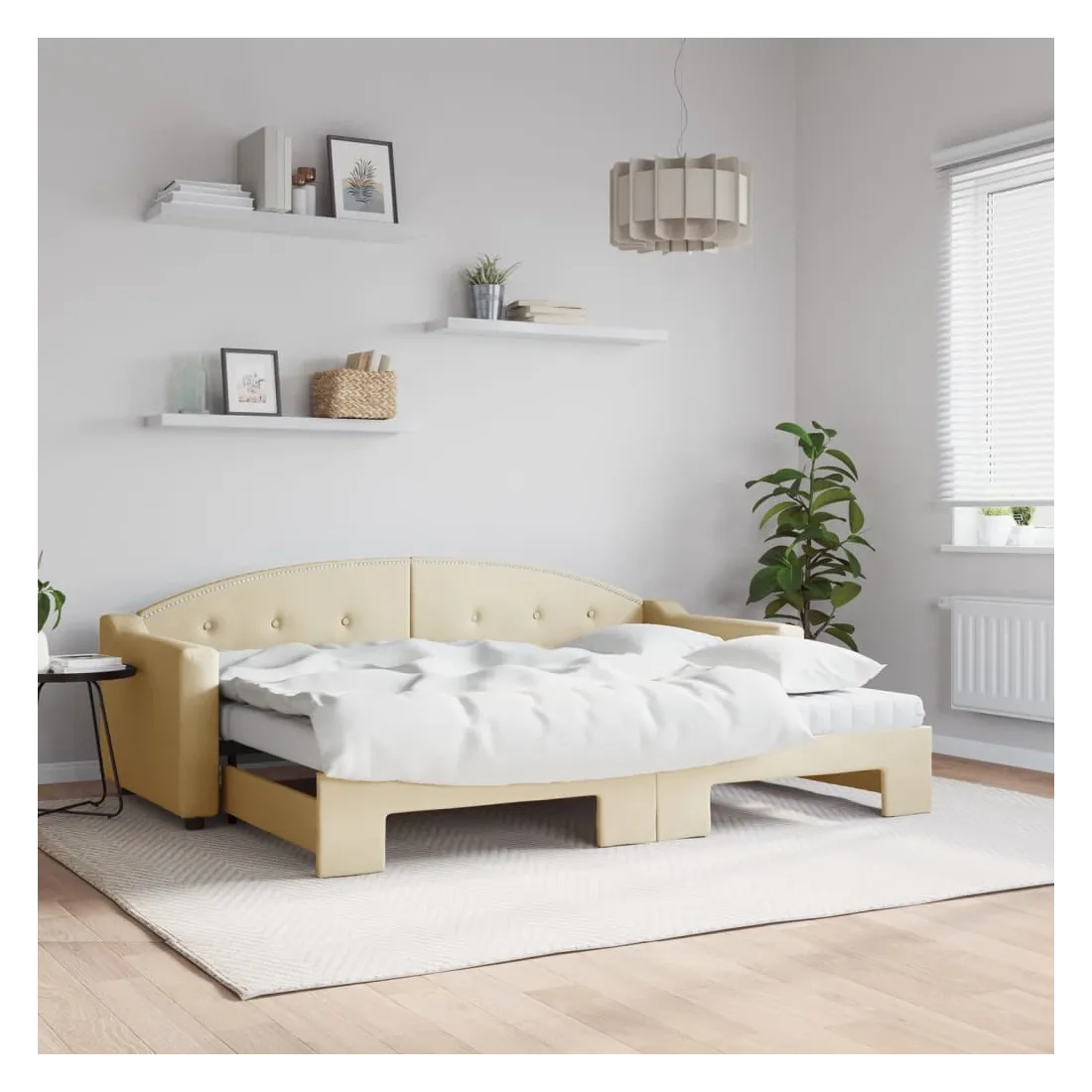 Ce lit de repos 2 en 1 avec lit gigogne, servant à la fois de canapé et de lit, constitue un supplément pratique et accrocheur à votre salon ou chambre à coucher. Lit de repos polyvalent : le canapé-lit fonctionne comme un canapé pendant la journée et se transforme facilement en lit double la nuit en retirant le lit gigogne, offrant une solution pratique pour accueillir des invités et maximiser l'espace. Matelas en mousse confortable : ce lit est fourni avec deux matelas en mousse pour un soutien maximal et un confort optimal. Tissu durable et construction solide : ce canapé-lit a une structure robuste en bois et en métal et est recouvert d'un tissu durable et confortable.