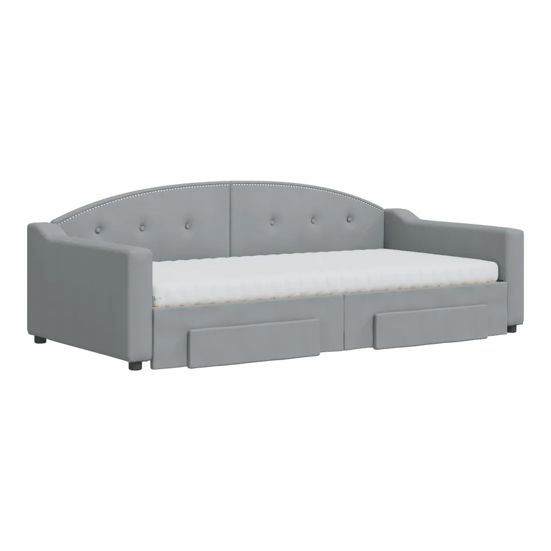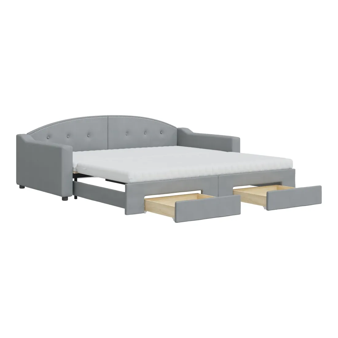 Ce lit de repos 2 en 1 avec lit gigogne, servant à la fois de canapé et de lit, constitue un supplément pratique et accrocheur à votre salon ou chambre à coucher. Lit de repos polyvalent : le canapé-lit fonctionne comme un canapé pendant la journée et se transforme facilement en lit double la nuit en retirant le lit gigogne, offrant une solution pratique pour accueillir des invités et maximiser l'espace. Grand espace de rangement : ce lit d'appoint dispose de deux tiroirs à roulettes qui offrent suffisamment d'espace pour ranger vos vêtements, chaussettes, jouets, coussins, etc. Matelas en mousse confortable : ce lit est fourni avec deux matelas en mousse pour un soutien maximal et un confort optimal. Tissu durable et construction solide : ce canapé-lit a une structure robuste en bois et en métal et est recouvert d'un tissu durable et confortable.