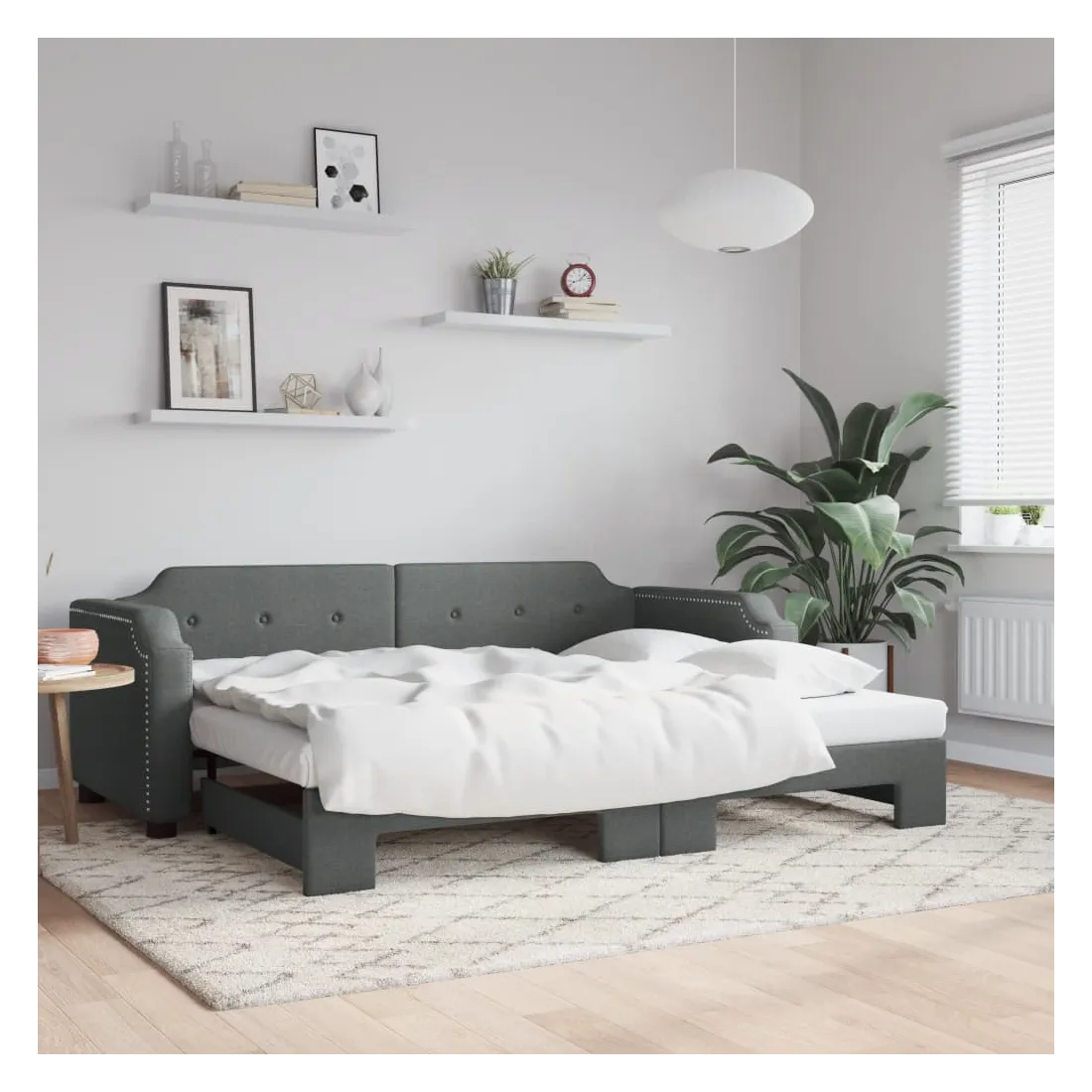 Ce lit de repos 2 en 1 avec lit gigogne, servant à la fois de canapé et de lit, constitue un supplément pratique et accrocheur à votre salon ou chambre à coucher. Lit de repos polyvalent : le canapé-lit fonctionne comme un canapé pendant la journée et se transforme facilement en lit double la nuit en retirant le lit gigogne, offrant une solution pratique pour accueillir des invités et maximiser l'espace. Tissu durable : lit d'appoint est en tissu. Le tissu présente un aspect simple et épuré tout en restant respirant et durable. Construction solide : la structure en bois et en métal du lit assure robustesse et stabilité. Bon à savoir :Les matelas ne sont pas inclus avec ce lit de repos. Nous proposons une sélection variée de matelas. Vous pouvez consulter notre boutique pour les matelas assortis.