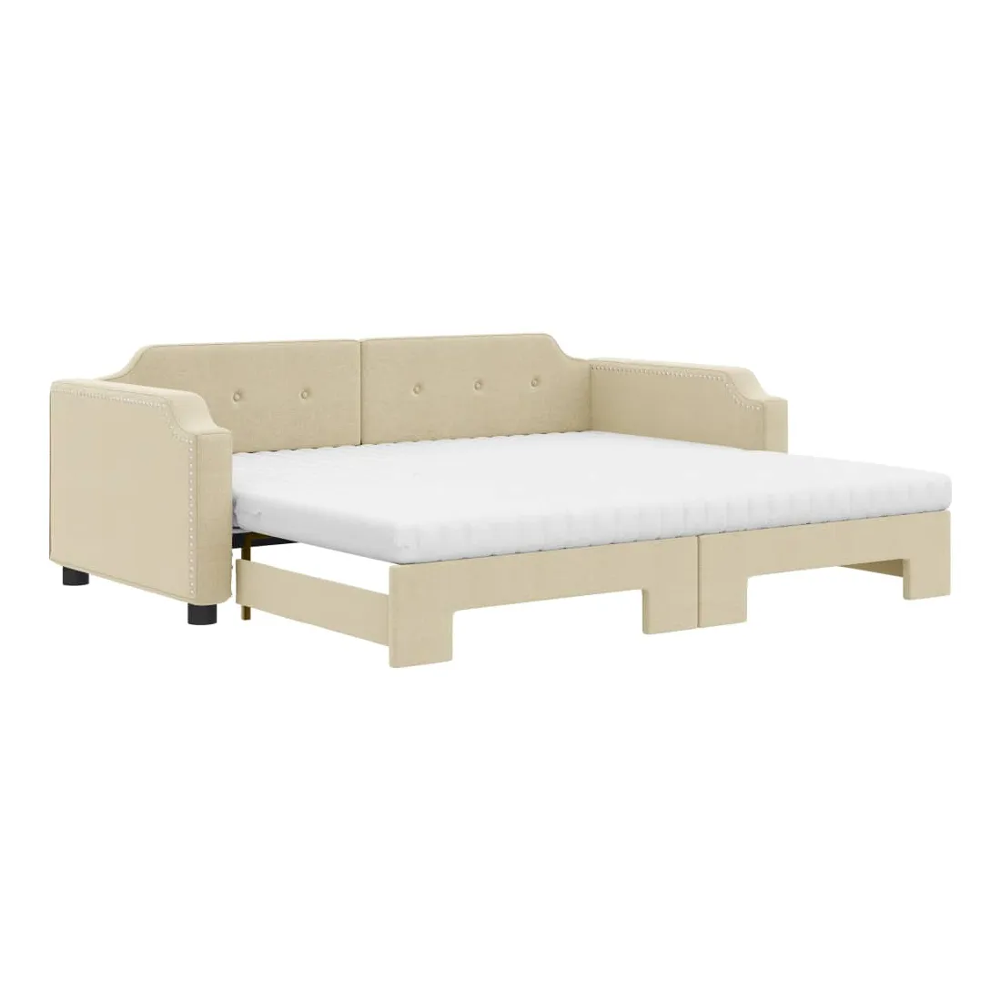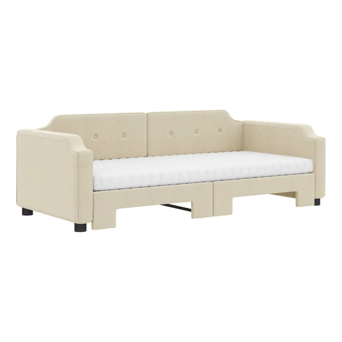 Ce lit de repos 2 en 1 avec lit gigogne, servant à la fois de canapé et de lit, constitue un supplément pratique et accrocheur à votre salon ou chambre à coucher. Lit de repos polyvalent : le canapé-lit fonctionne comme un canapé pendant la journée et se transforme facilement en lit double la nuit en retirant le lit gigogne, offrant une solution pratique pour accueillir des invités et maximiser l'espace. Matelas en mousse confortable : ce lit est fourni avec deux matelas en mousse pour un soutien maximal et un confort optimal. Tissu durable et construction solide : ce canapé-lit a une structure robuste en bois et en métal et est recouvert d'un tissu durable et confortable.