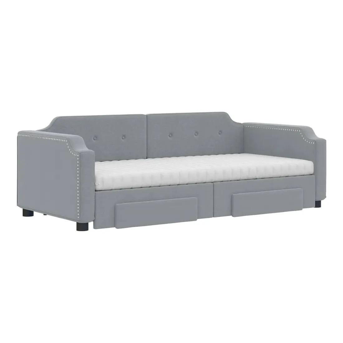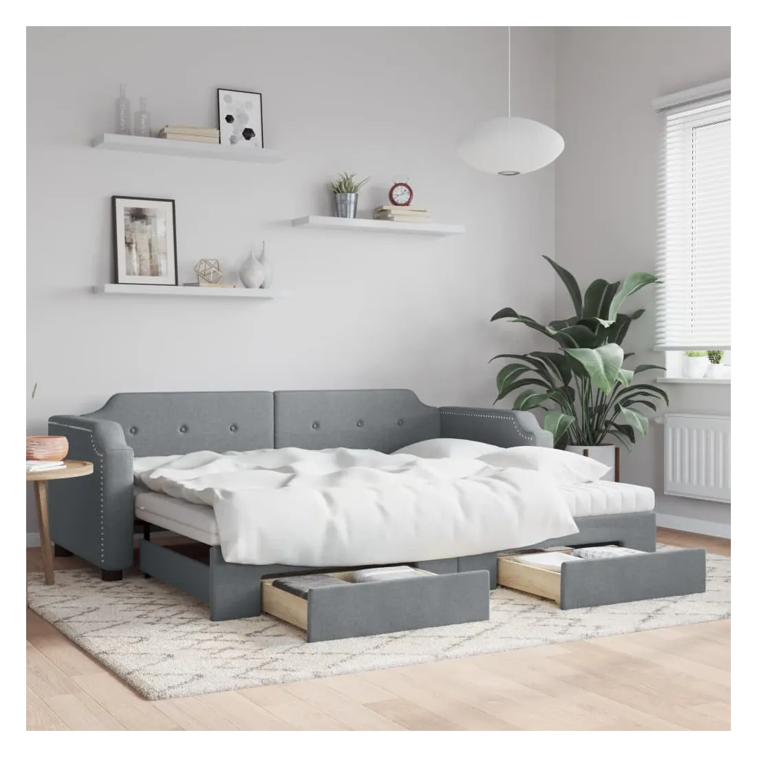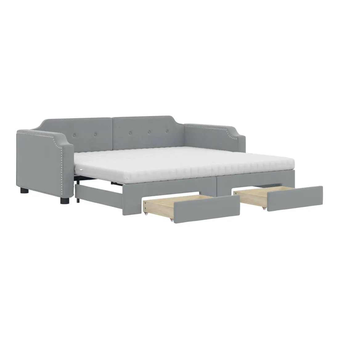 Ce lit de repos 2 en 1 avec lit gigogne, servant à la fois de canapé et de lit, constitue un supplément pratique et accrocheur à votre salon ou chambre à coucher. Lit de repos polyvalent : le canapé-lit fonctionne comme un canapé pendant la journée et se transforme facilement en lit double la nuit en retirant le lit gigogne, offrant une solution pratique pour accueillir des invités et maximiser l'espace. Grand espace de rangement : ce lit d'appoint dispose de deux tiroirs à roulettes qui offrent suffisamment d'espace pour ranger vos vêtements, chaussettes, jouets, coussins, etc. Matelas en mousse confortable : ce lit est fourni avec deux matelas en mousse pour un soutien maximal et un confort optimal. Tissu durable et construction solide : ce canapé-lit a une structure robuste en bois et en métal et est recouvert d'un tissu durable et confortable.