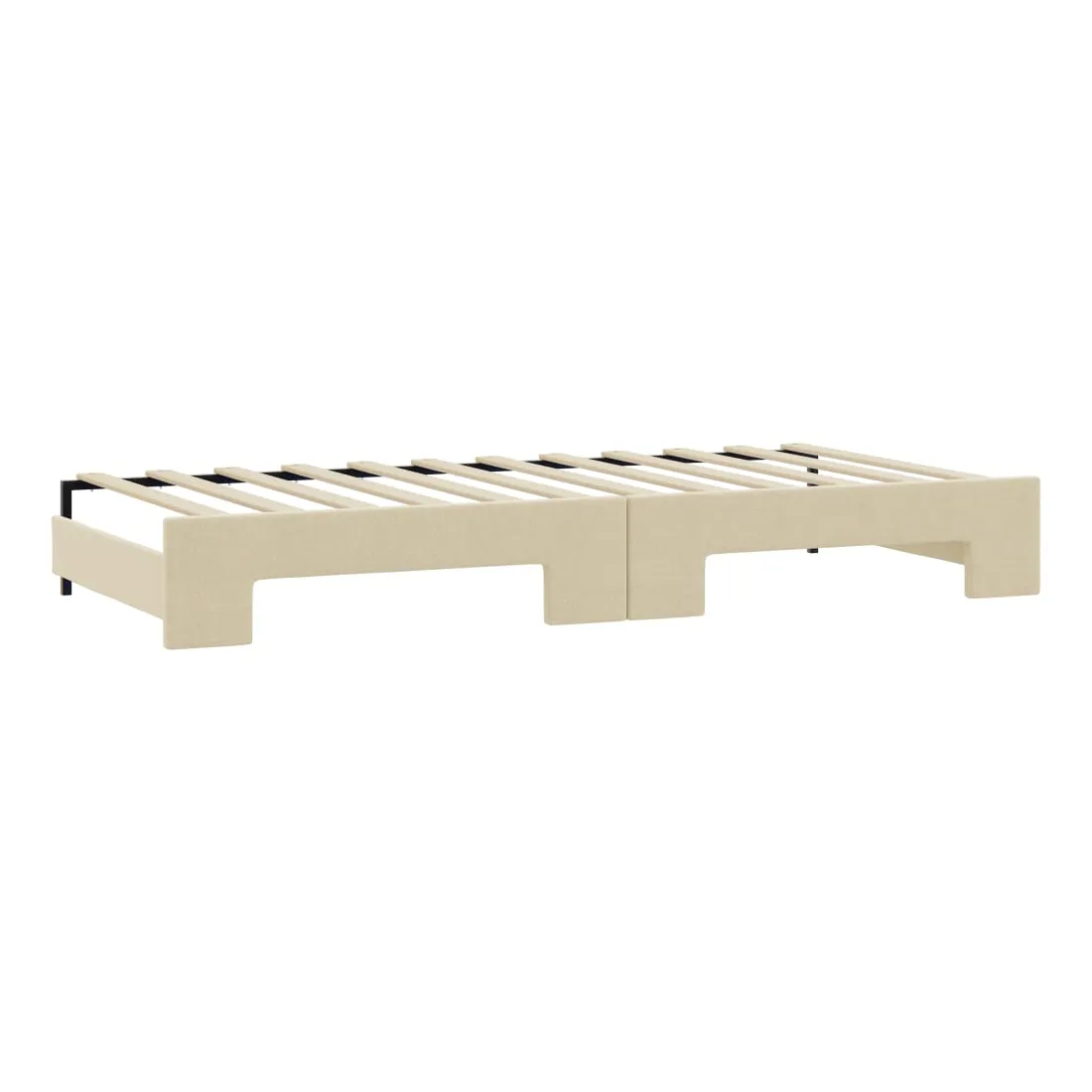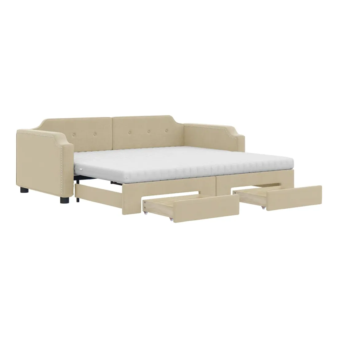Lit de jour avec gigogne et tiroirs crème 90x200 cm tissu