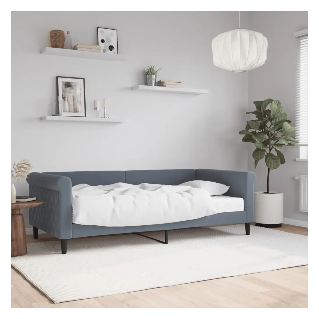 Ce lit de repos 2 en 1 avec matelas, servant à la fois de canapé et de lit, constitue un supplément pratique et accrocheur à votre salon ou votre chambre à coucher. Lit de jour polyvalent : le canapé-lit peut être utilisé comme canapé pendant la journée, ou comme lit pendant la nuit pour offrir une solution rapide pour accueillir des invités pour la nuit.Matelas en mousse confortable : ce lit est fourni avec un matelas en mousse pour un soutien maximal et un confort optimal.Velours doux et construction solide : ce canapé-lit a un cadre robuste en bois et en métal et est recouvert de velours doux et confortable.Design moderne : le canapé-lit a un design moderne qui présente des lignes épurées, un aspect minimaliste, ainsi que de la lumière naturelle, et ajoutera un style moderne à votre intérieur !