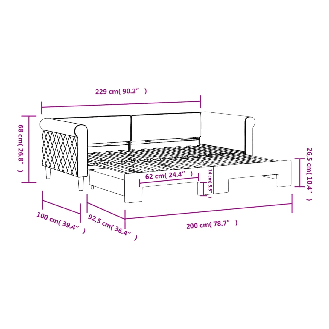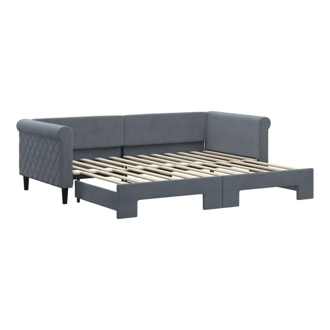 Ce lit de repos 2 en 1 avec lit gigogne, servant à la fois de canapé et de lit, constitue un supplément pratique et accrocheur à votre salon ou chambre à coucher. Lit de repos polyvalent : le canapé-lit fonctionne comme un canapé pendant la journée et se transforme facilement en lit double la nuit en retirant le lit gigogne, offrant une solution pratique pour accueillir des invités et maximiser l'espace.Velours doux et construction solide : ce canapé-lit a un cadre robuste en bois et en métal et est recouvert de velours doux et confortable.Design moderne : le canapé-lit a un design moderne qui présente des lignes épurées, un aspect minimaliste, ainsi que de la lumière naturelle, et ajoutera un style moderne à votre intérieur ! Bon à savoir :Les matelas ne sont pas inclus avec ce lit. Nous proposons une sélection variée de matelas. Vous pouvez consulter notre boutique pour trouver les matelas assortis.