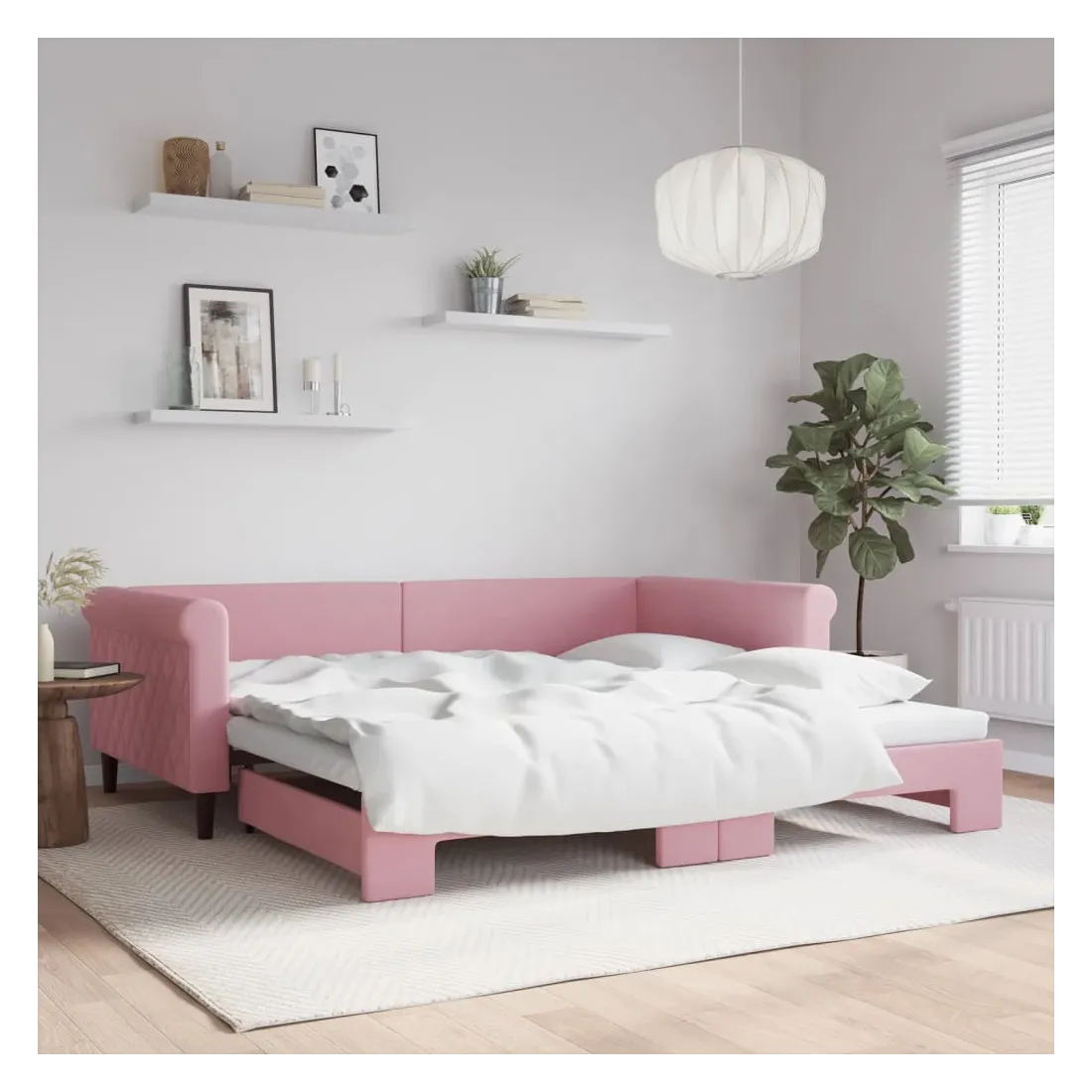 Ce lit de repos 2 en 1 avec lit gigogne, servant à la fois de canapé et de lit, constitue un supplément pratique et accrocheur à votre salon ou chambre à coucher. Lit de repos polyvalent : le canapé-lit fonctionne comme un canapé pendant la journée et se transforme facilement en lit double la nuit en retirant le lit gigogne, offrant une solution pratique pour accueillir des invités et maximiser l'espace.Velours doux et construction solide : ce canapé-lit a un cadre robuste en bois et en métal et est recouvert de velours doux et confortable.Design moderne : le canapé-lit a un design moderne qui présente des lignes épurées, un aspect minimaliste, ainsi que de la lumière naturelle, et ajoutera un style moderne à votre intérieur ! Bon à savoir :Les matelas ne sont pas inclus avec ce lit. Nous proposons une sélection variée de matelas. Vous pouvez consulter notre boutique pour trouver les matelas assortis.