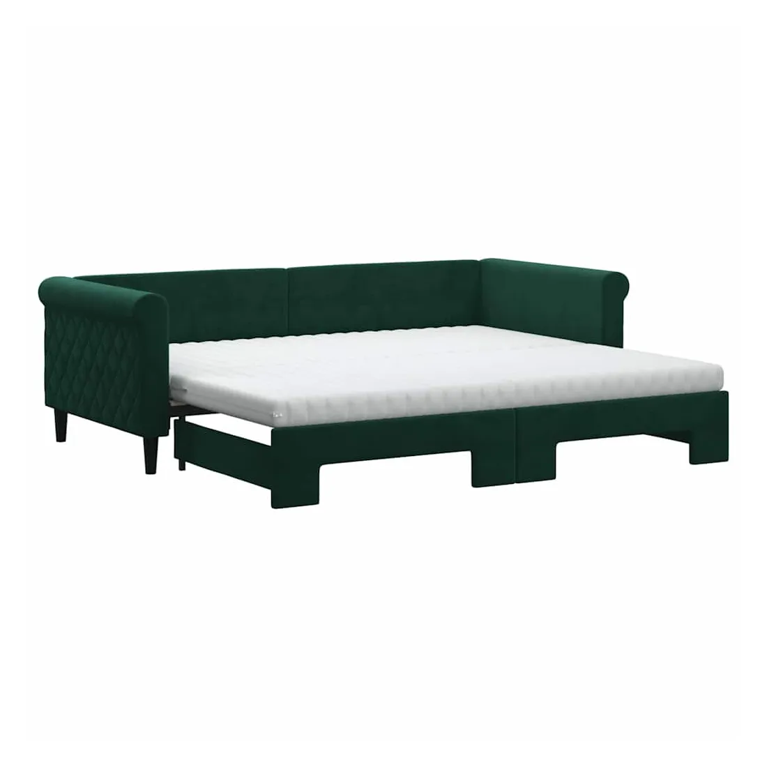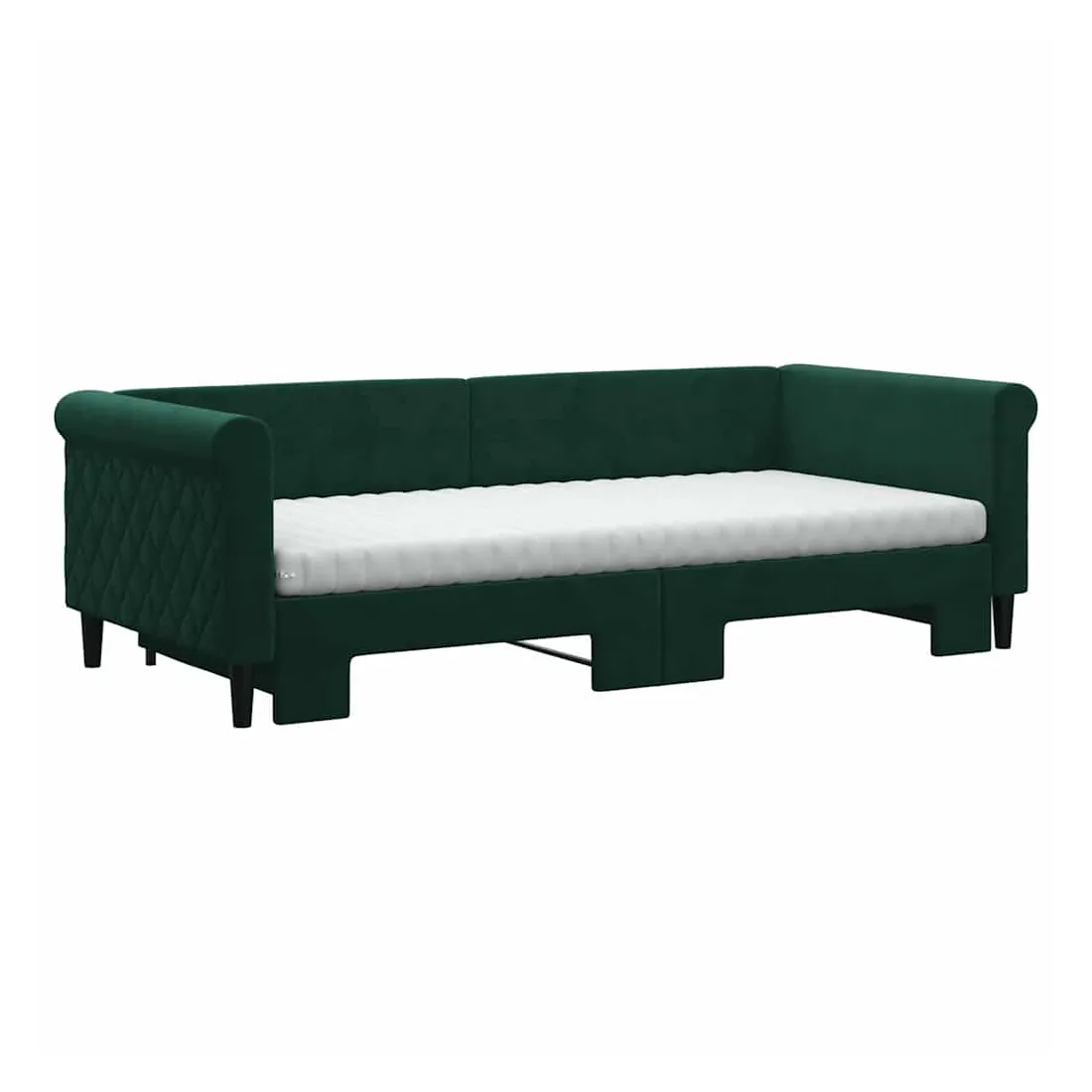 Lit de jour avec gigogne et matelas vert foncé 90x200cm velours