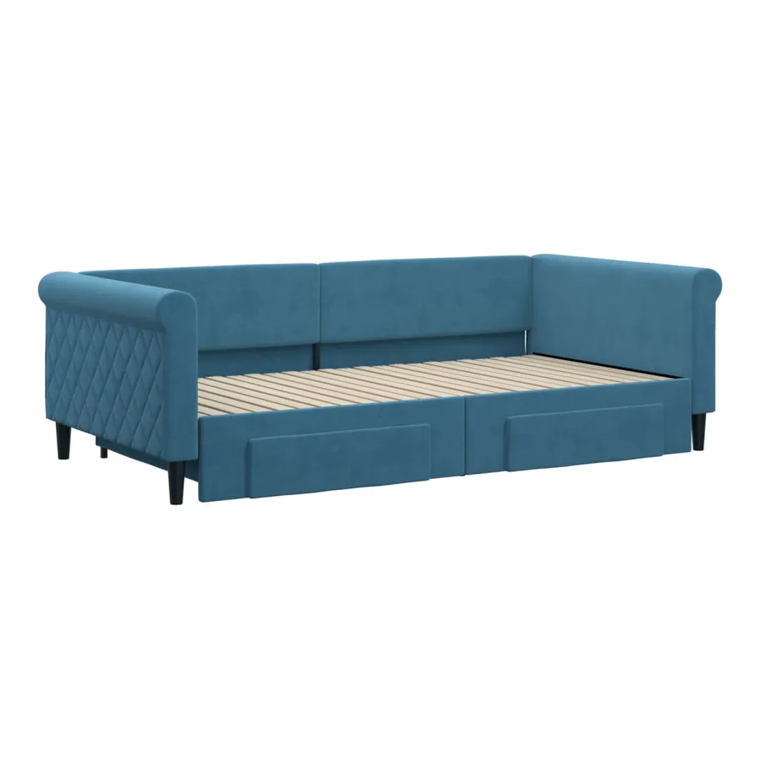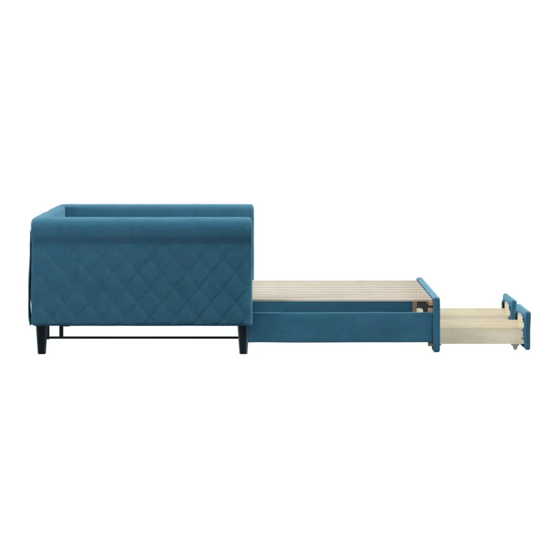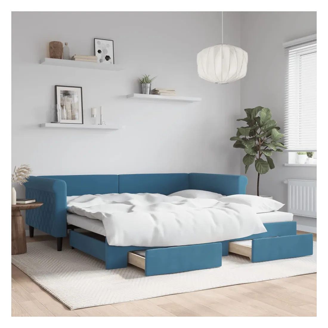 Ce lit de repos 2 en 1 avec lit gigogne, servant à la fois de canapé et de lit, constitue un supplément pratique et accrocheur à votre salon ou chambre à coucher. Lit de repos polyvalent : le canapé-lit fonctionne comme un canapé pendant la journée et se transforme facilement en lit double la nuit en retirant le lit gigogne, offrant une solution pratique pour accueillir des invités et maximiser l'espace.Grand espace de rangement : ce lit d'appoint dispose de deux tiroirs à roulettes qui offrent suffisamment d'espace pour ranger vos vêtements, chaussettes, jouets, coussins, etc.Velours doux et construction solide : ce canapé-lit a un cadre robuste en bois et en métal et est recouvert de velours doux et confortable.Design moderne : le canapé-lit a un design moderne qui présente des lignes épurées, un aspect minimaliste, ainsi que de la lumière naturelle, et ajoutera un style moderne à votre intérieur ! Bon à savoir :Les matelas ne sont pas inclus avec ce lit. Nous proposons une sélection variée de matelas. Vous pouvez consulter notre boutique pour trouver les matelas assortis.