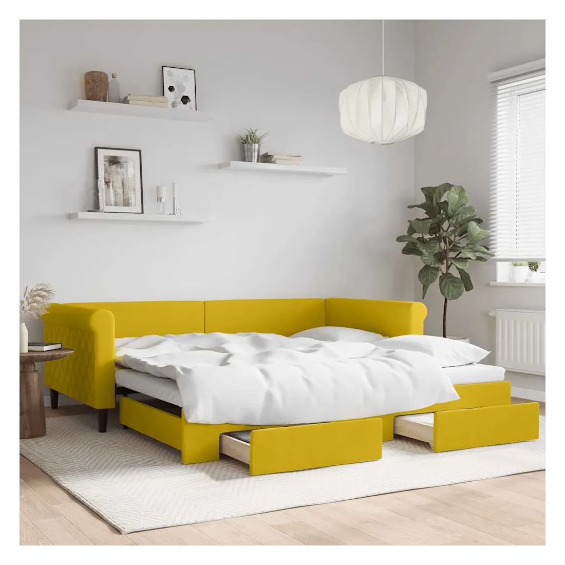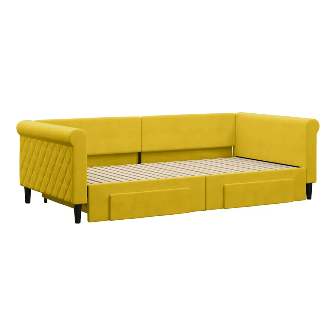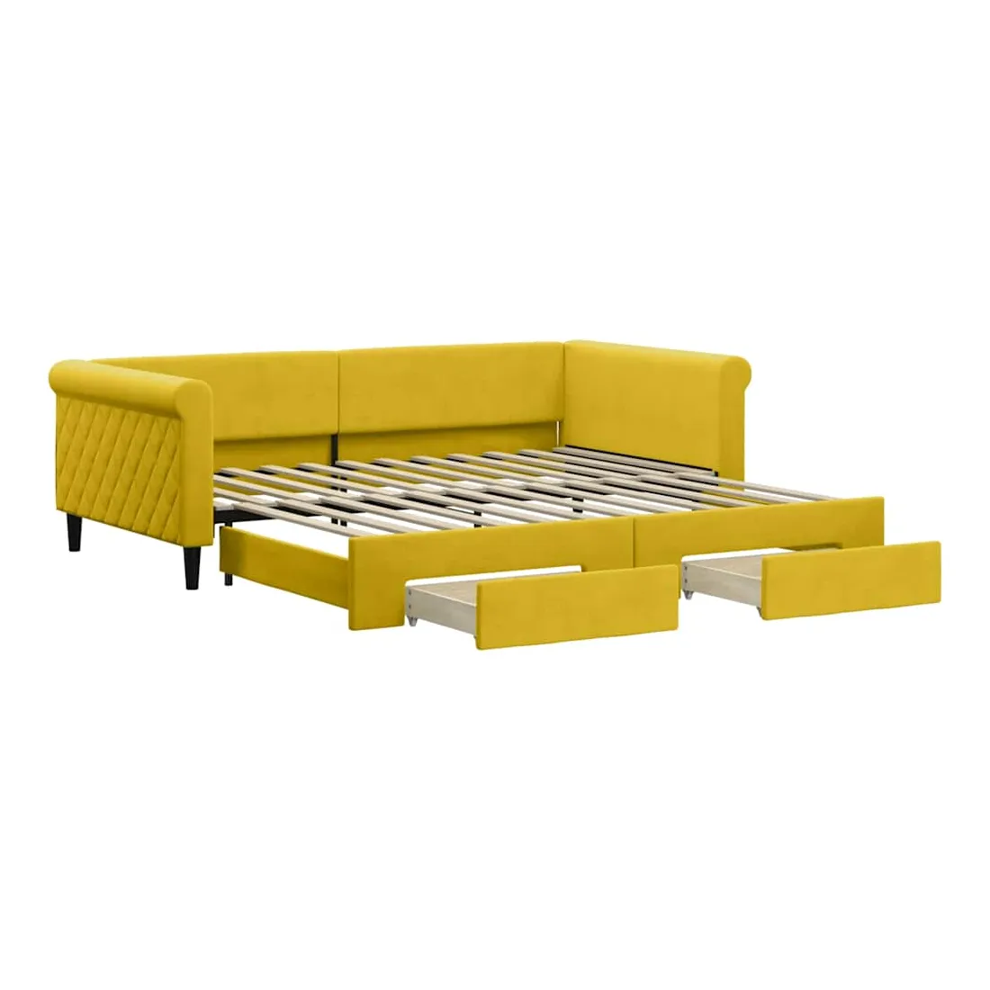 Lit de jour avec gigogne et tiroirs jaune 100x200 cm velours