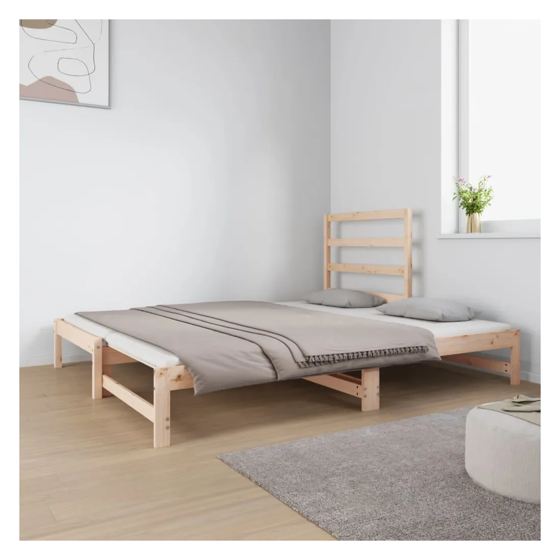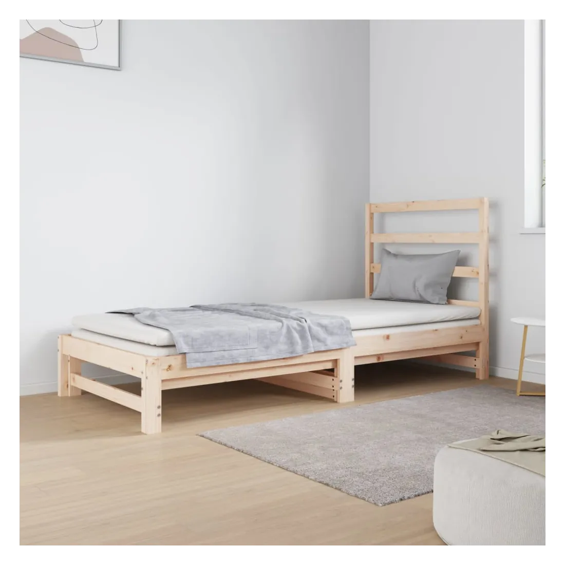 Ce lit de jour en bois polyvalent peut être utilisé comme lit dans votre chambre à coucher et s'intègre également parfaitement comme canapé dans votre salon. Bois de pin massif : le bois de pin massif est un matériau naturel magnifique. Le bois de pin a un grain droit et les nœuds donnent au matériau son aspect caractéristique et rustique. Ce lit d'appoint est en bois de pin massif, plus stable et durable.Design à lattes : le sommier à lattes permet une meilleure circulation de l'air pour garder le matelas frais plus longtemps, améliorant la capacité de poids du lit et assurant la stabilité.Utilisation facile : ce lit est très pratique à utiliser et ne nécessite pas de sommier ni de cadre. Placez simplement le matelas sur le dessus et profitez d'un sommeil réparateur ou d'un temps assis !Canapé-lit coulissant : ce lit de jour en bois peut être utilisé comme canapé pendant la journée ou comme lit la nuit, offrant une solution rapide pour accueillir des invités pour la nuit tout en économisant de l'espace.Soutien confortable : cette tête de lit vous offre un excellent soutien dorsal lorsque vous êtes assis au lit pour lire ou regarder des films. Bon à savoir :La livraison comprend uniquement un cadre de lit de jour. Le matelas n'est pas inclus. Vous pouvez consulter notre boutique pour trouver les matelas assortis.Certaines pièces de tête de lit sont emballées dans les cartons du cadre de lit en raison du manque d’espace.Chaque produit est livré avec un manuel de montage dans la boîte pour un montage facile.