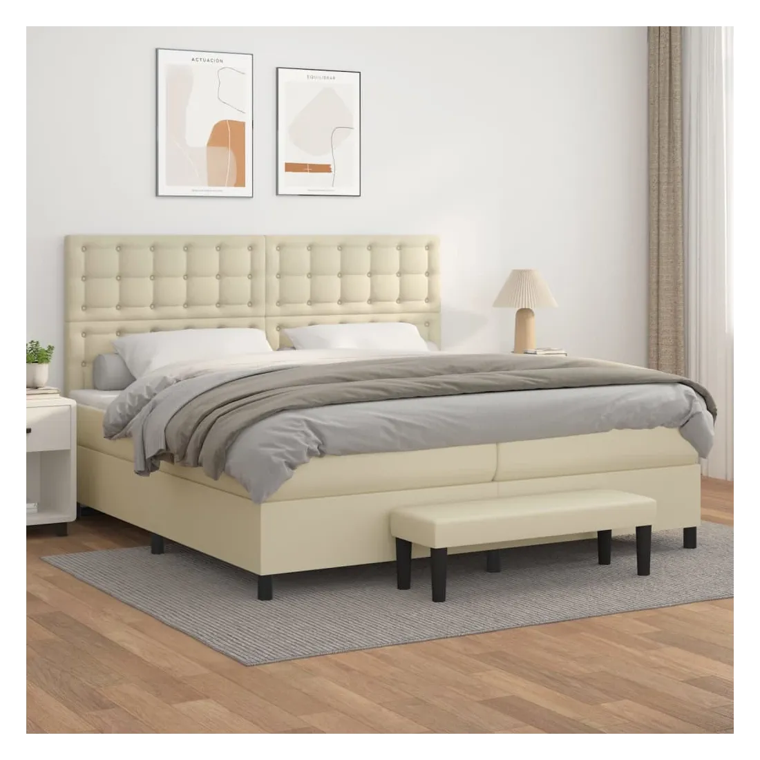 vidaXLUtilisez ce lit à sommier pour profiter d'une nuit de sommeil réparatrice ! Il vous offre une relaxation maximale et un sommeil agréable. Similicuir durable : le similicuir de qualité supérieure est un matériau très durable. Il est résistant aux taches, ce qui le rend facile à nettoyer avec un chiffon humide. La surface lisse donne également un aspect luxueux et la beauté du cuir véritable.Tête de lit pratique : la tête de lit est réglable en hauteur selon vos préférences. La tête de lit vous offre un excellent soutien du dos lorsque vous êtes assis dans votre lit pour lire ou regarder la télévision.Matelas à ressorts ensachés : le ressort ensaché individuel intégré est connu pour sa très haute qualité tout en assurant un haut niveau de durabilité et d'adaptabilité. Il peut absorber efficacement le bruit et les chocs causés par les sauts et les rotations.Support moyen-dur : ce matelas de lit offre une stabilité accrue et juste le niveau de fermeté sans sacrifier le confort. Il est donc idéal pour les personnes qui dorment sur le dos ou sur le ventre.Protège-matelas doux pour la peau : le protège-matelas est recouvert d'un tissu résistant et doux pour la peau, ce qui le rend souple et confortable.Banc multifonctionnel : ce banc peut servir de siège supplémentaire dans votre maison. Il peut également être utilisé comme banc de bout de lit. Remarque :Pour des raisons d'hygiène, le matelas ne peut pas être retourné si l'emballage est retiré ou ouvert.Chaque produit est livré avec un manuel de montage dans la boîte pour un montage facile.