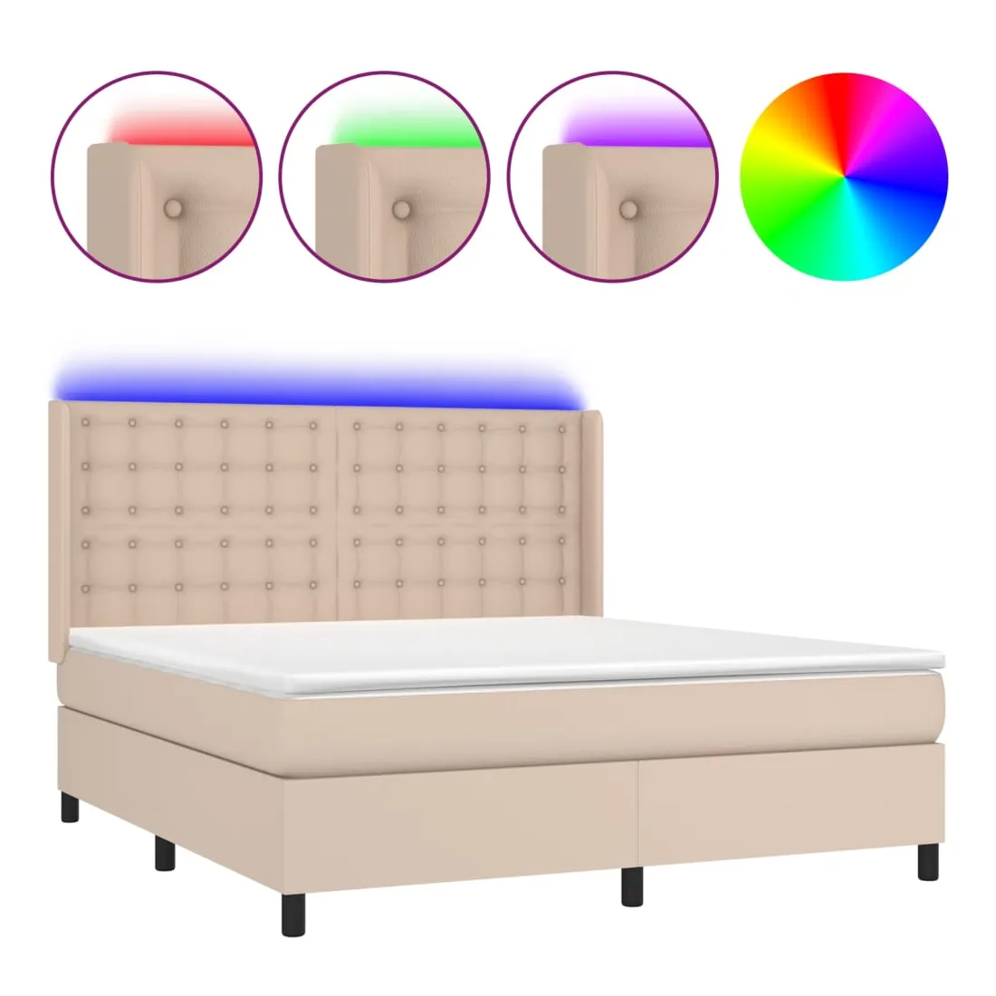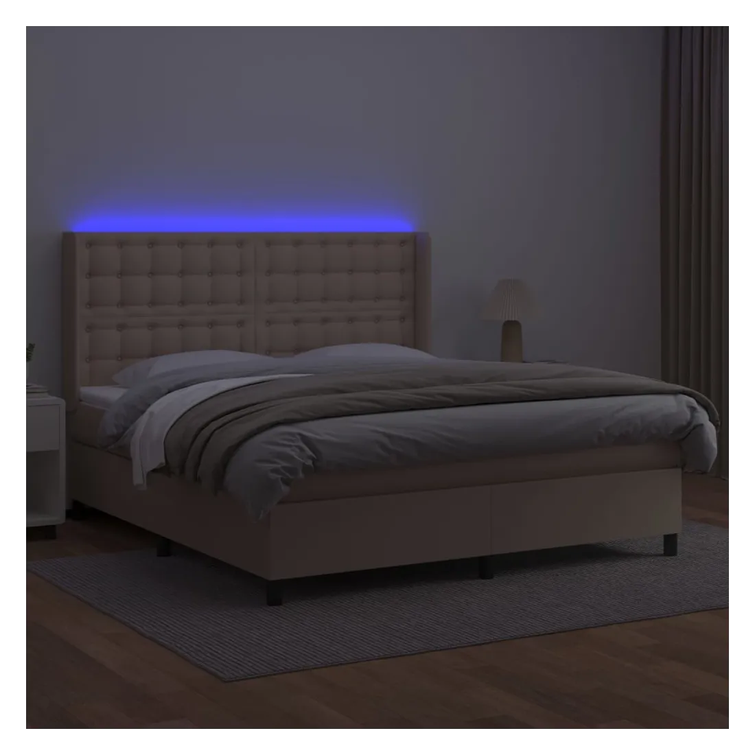 Utilisez ce sommier tapissier avec matelas et LED pour profiter d'un sommeil réparateur ! C'est le point central de votre chambre à coucher. Similicuir durable : le similicuir de qualité supérieure est un matériau très durable. Il est résistant aux taches, ce qui le rend facile à nettoyer avec un chiffon humide. La surface lisse donne également un aspect luxueux et la beauté du cuir véritable.Tête de lit pratique : la tête de lit est réglable en hauteur selon vos préférences. La tête de lit vous offre un excellent soutien du dos lorsque vous êtes assis dans votre lit pour lire ou regarder la télévision.Bande LED colorée : apportez de l'éclairage dans l'obscurité avec des lumières LED colorées !Matelas à ressorts ensachés : le ressort ensaché individuel intégré est connu pour sa très haute qualité tout en assurant un haut niveau de durabilité et d'adaptabilité. Il peut absorber efficacement le bruit et les chocs causés par les sauts et les rotations.Protège-matelas doux pour la peau : le protège-matelas est recouvert d'un tissu résistant et doux pour la peau, ce qui le rend souple et confortable. Remarque :Pour des raisons d'hygiène, le matelas ne peut pas être retourné si l'emballage est retiré ou ouvert.Seule la partie avec un symbole de ciseaux peut être coupée et seule la partie avec l'USB continuera à fonctionner comme avant.Chaque produit est livré avec un manuel de montage dans la boîte pour un montage facile.Ce produit est doté d'un connecteur USB, mais la source d'alimentation certifiée de USB 5V n'est pas incluse.
