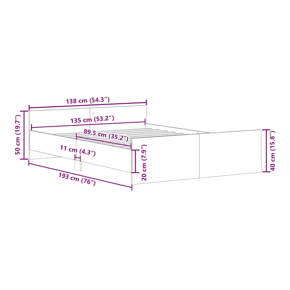 - Dimensions du matelas correspondant : 135 x 190 cm (l x L) (matelas non inclus)