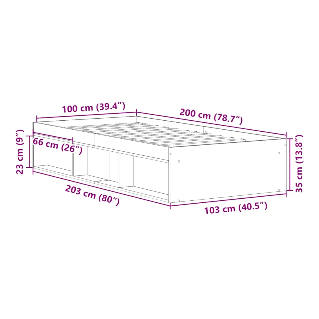 - Dimensions totales : 203 x 103 x 35 cm (L x l x H)
