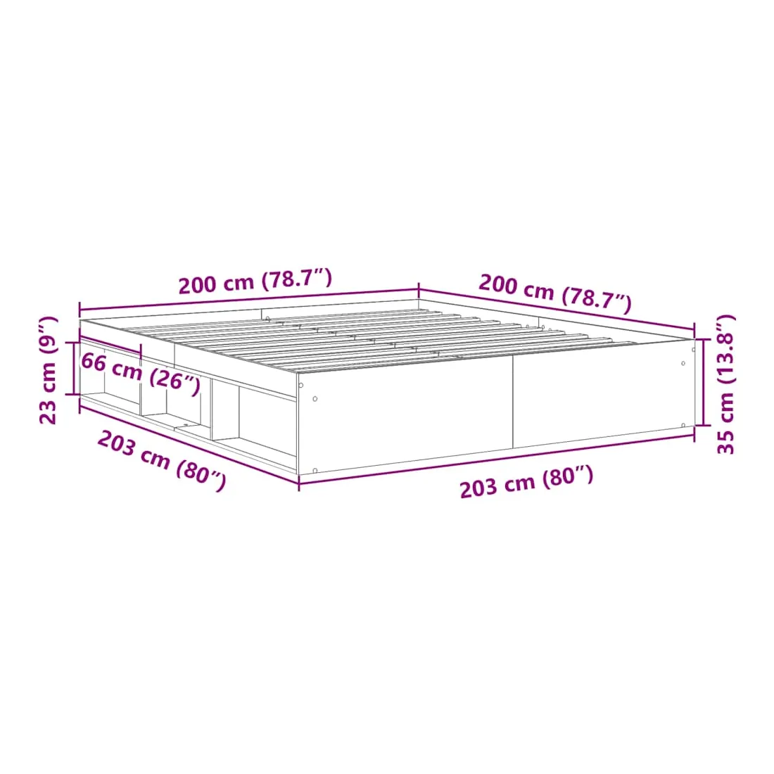 - Dimensions du matelas correspondant (matelas non inclus) : 200 x 200 cm (l x L)