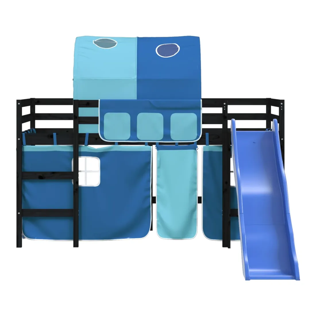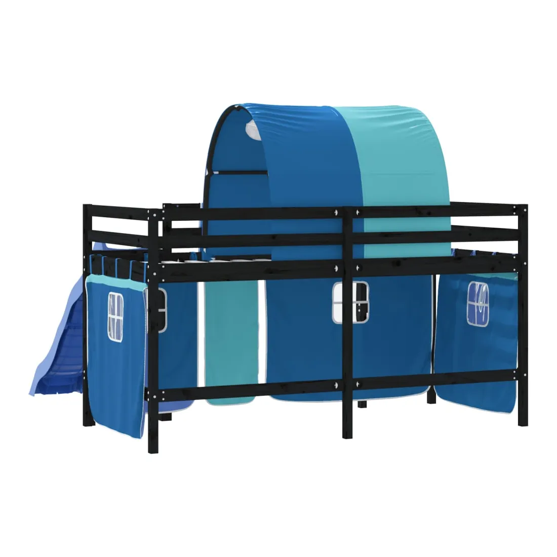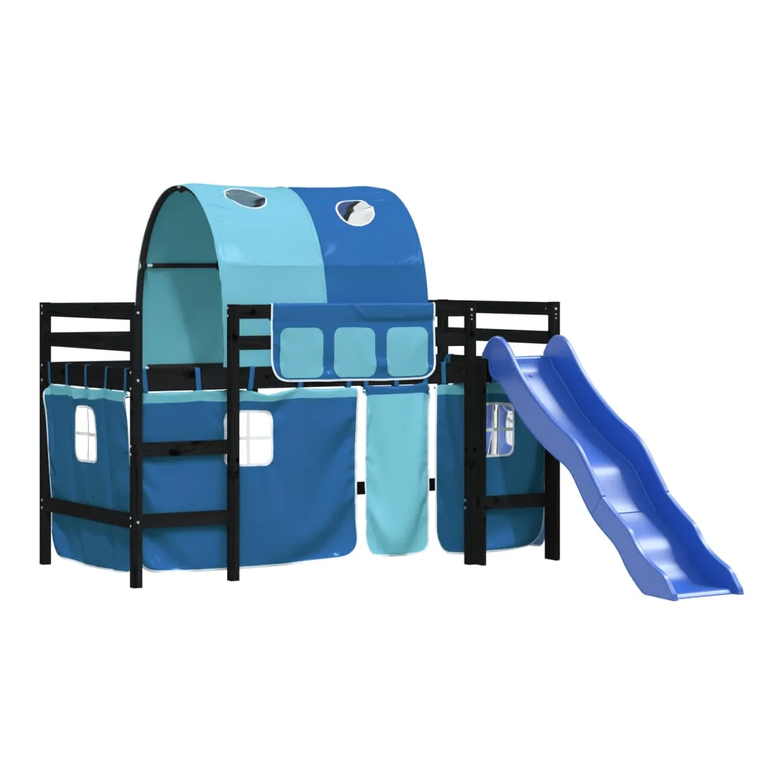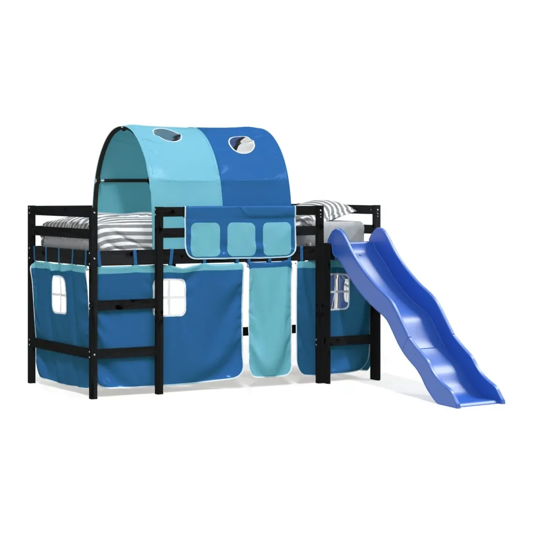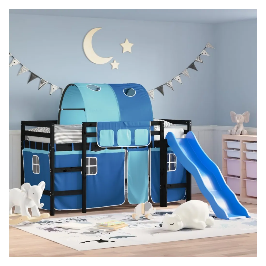 Lit mezzanine enfants avec tunnel sans matelas bleu 80x200 cm