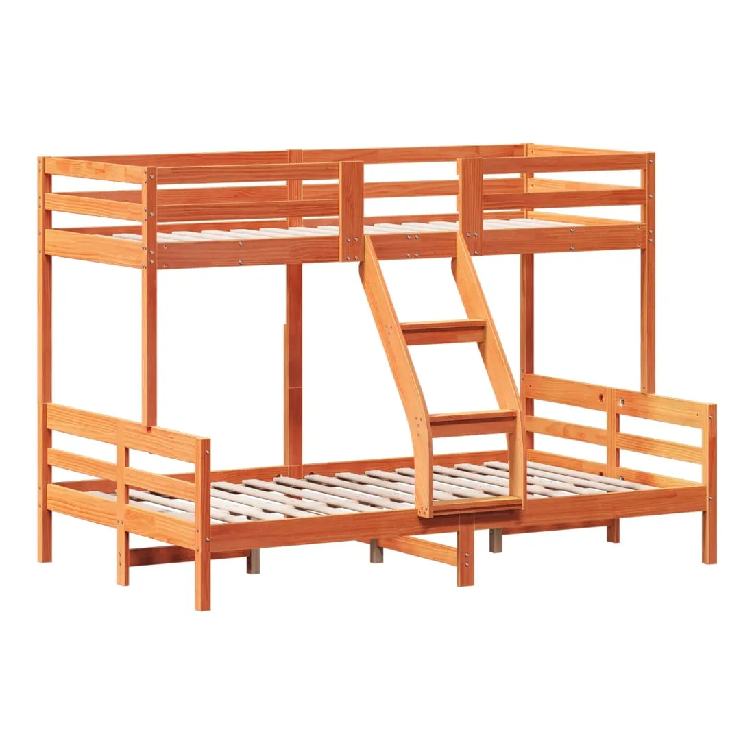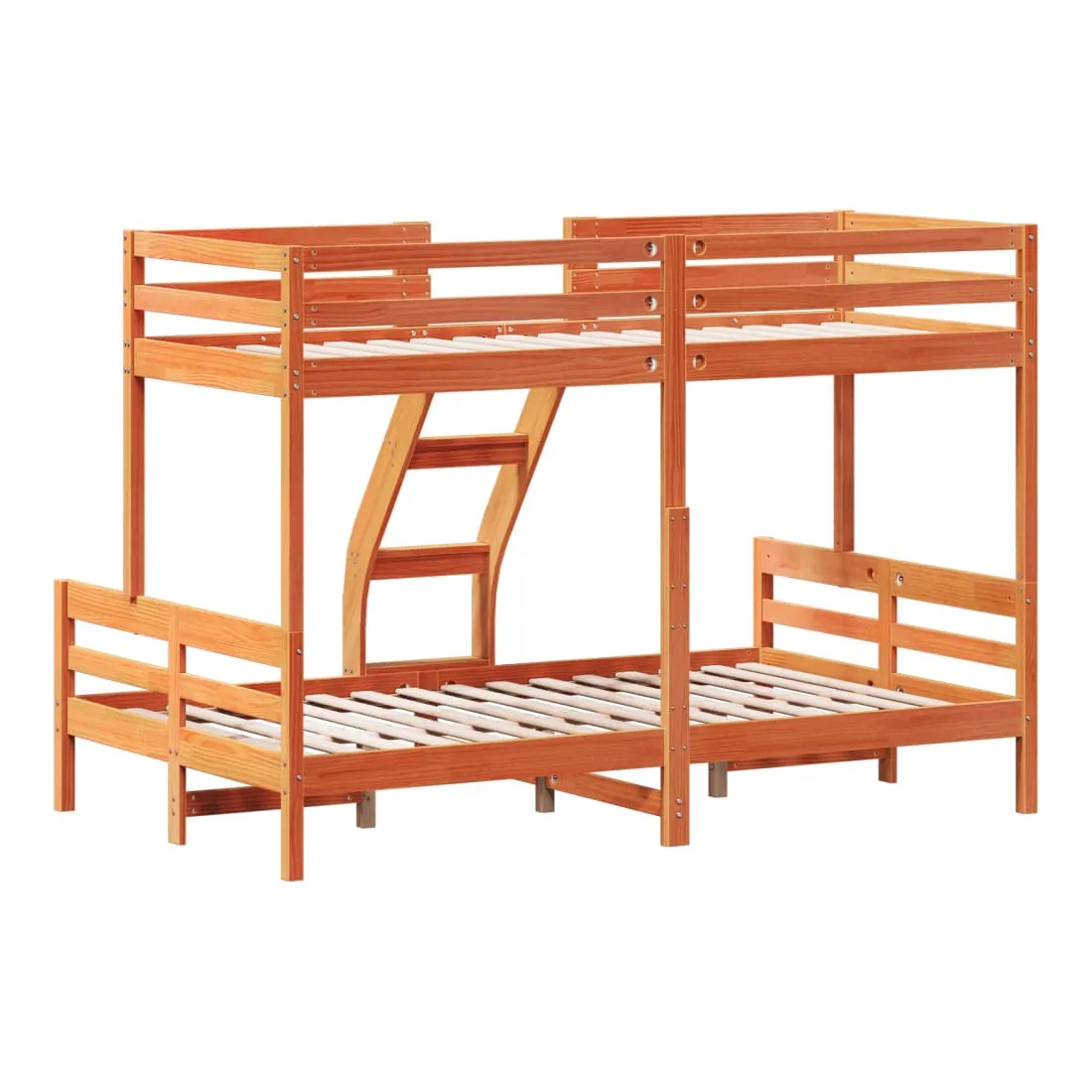 Ce lit superposé en bois est élégant et fonctionnel, ce qui en fait un supplément parfait à toute pièce dont l'espace est limité. Bois de pin massif : le bois de pin massif est un matériau naturel magnifique. Le bois de pin a un grain droit et les nœuds donnent au matériau son aspect caractéristique et rustique.Design sûr : le lit surélevé est conçu dans un souci de sécurité. Il comprend des garde-corps qui empêchent l'utilisateur de rouler pendant son sommeil.Convient aux espaces limités : le cadre de lit est un excellent choix pour toute pièce dont l'espace est limité, il fournit deux lits individuels avec un design compact. Bon à savoir :La livraison comprend uniquement un cadre de lit. Le matelas n'est pas inclus. Vous pouvez consulter notre boutique pour trouver les matelas assortis.