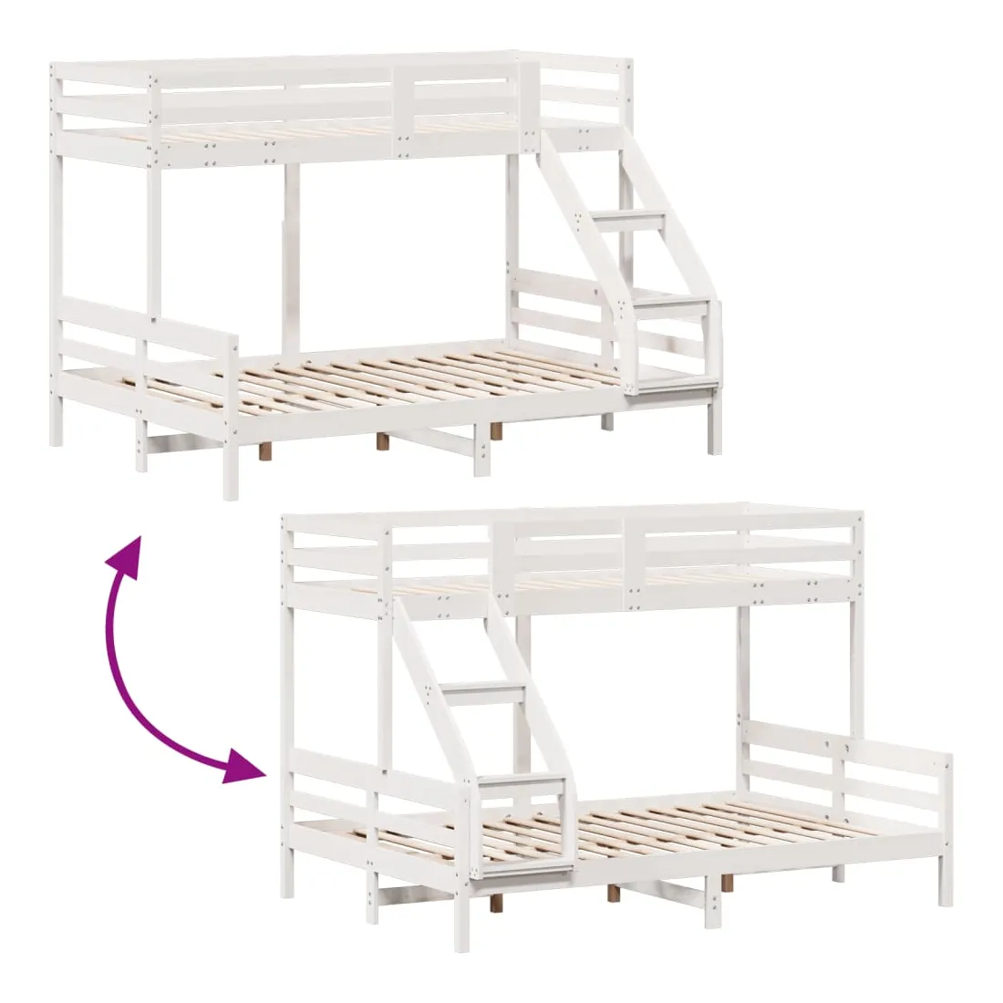 Ce lit superposé en bois est élégant et fonctionnel, ce qui en fait un supplément parfait à toute pièce dont l'espace est limité. Bois de pin massif : le bois de pin massif est un matériau naturel magnifique. Le bois de pin a un grain droit et les nœuds donnent au matériau son aspect caractéristique et rustique.Design sûr : le lit surélevé est conçu dans un souci de sécurité. Il comprend des garde-corps qui empêchent l'utilisateur de rouler pendant son sommeil.Convient aux espaces limités : le cadre de lit est un excellent choix pour toute pièce dont l'espace est limité, il fournit deux lits individuels avec un design compact. Bon à savoir :La livraison comprend uniquement un cadre de lit. Le matelas n'est pas inclus. Vous pouvez consulter notre boutique pour trouver les matelas assortis.