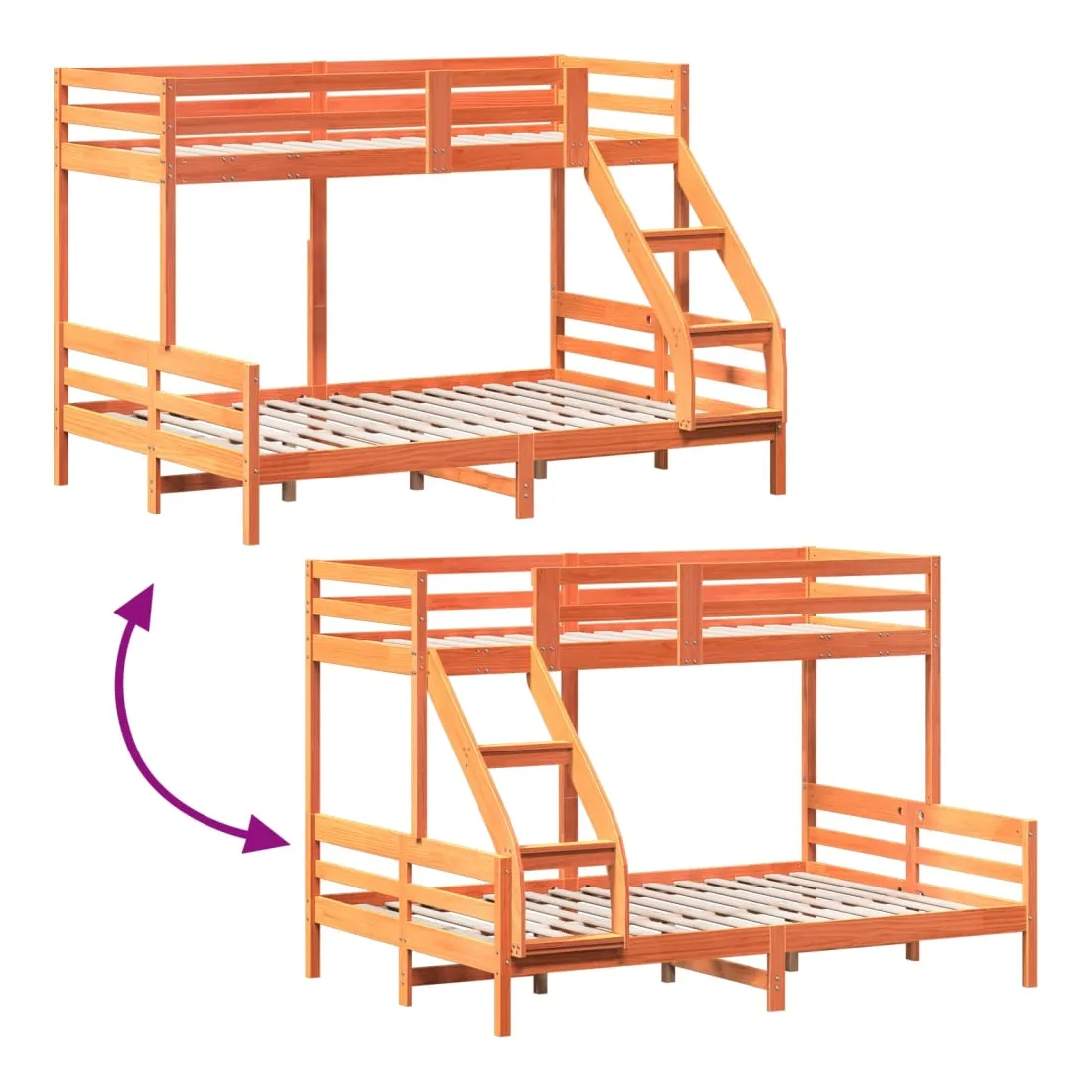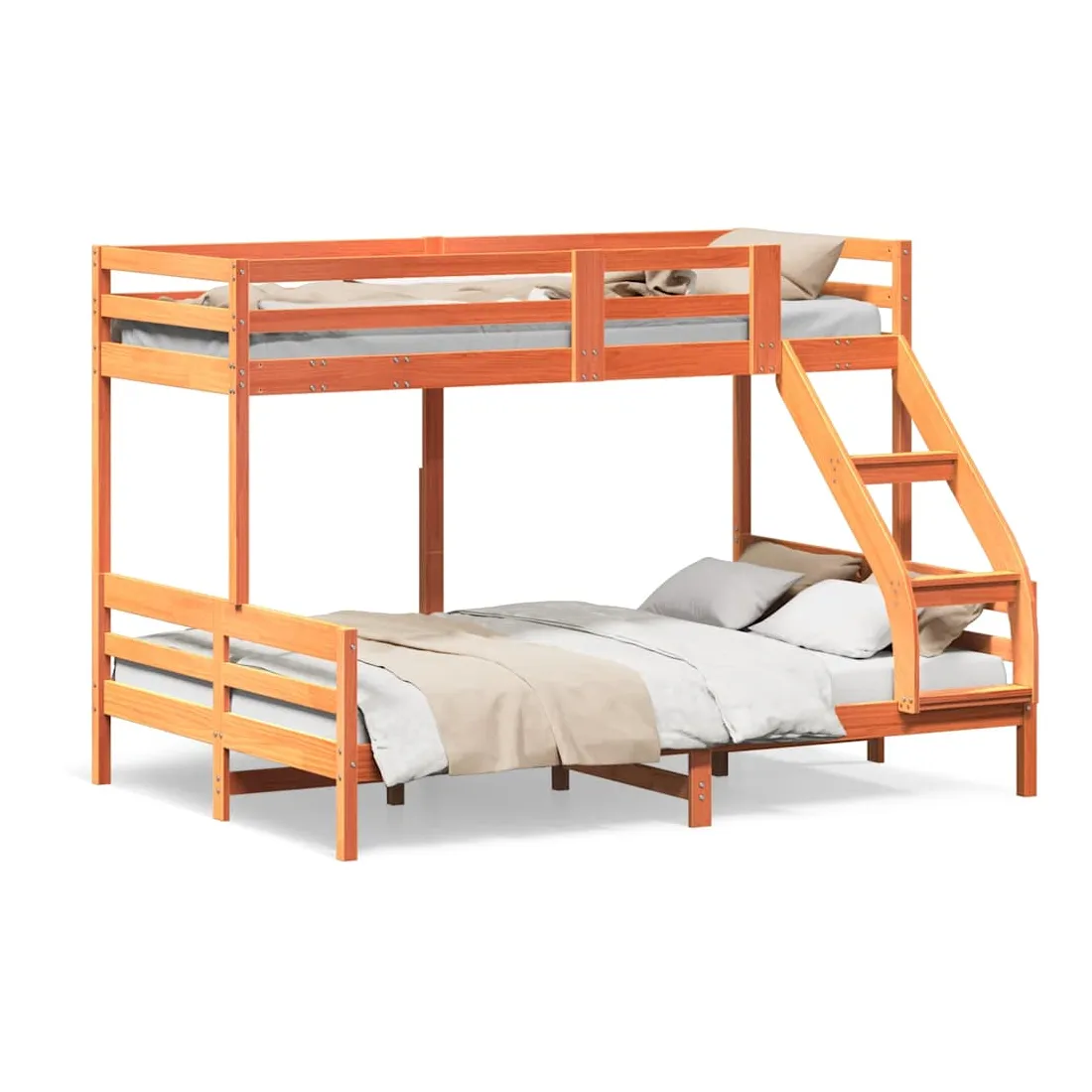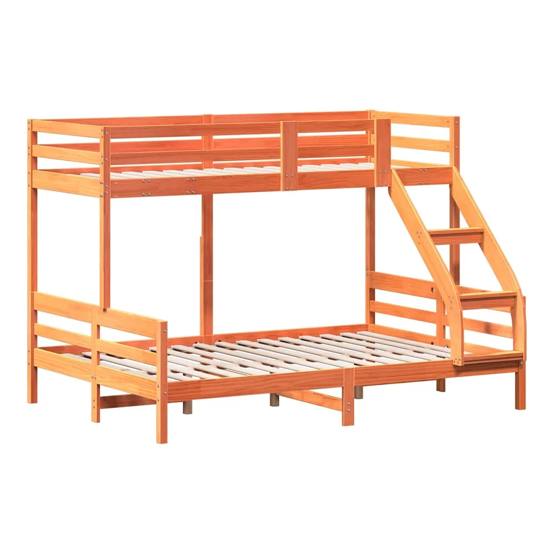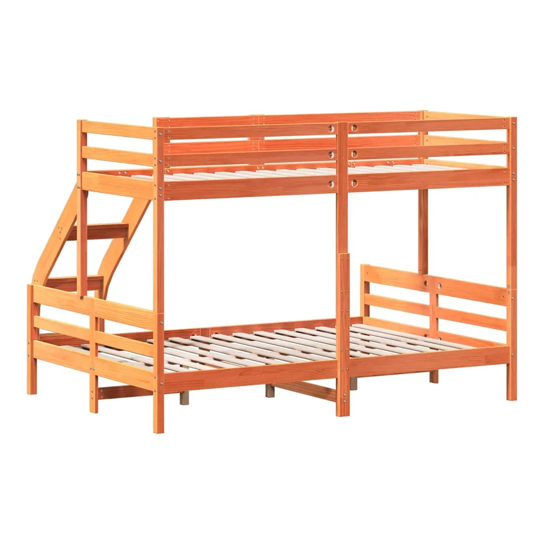 Ce lit superposé en bois est élégant et fonctionnel, ce qui en fait un supplément parfait à toute pièce dont l'espace est limité. Bois de pin massif : le bois de pin massif est un matériau naturel magnifique. Le bois de pin a un grain droit et les nœuds donnent au matériau son aspect caractéristique et rustique.Design sûr : le lit surélevé est conçu dans un souci de sécurité. Il comprend des garde-corps qui empêchent l'utilisateur de rouler pendant son sommeil.Convient aux espaces limités : le cadre de lit est un excellent choix pour toute pièce dont l'espace est limité, il fournit deux lits individuels avec un design compact. Bon à savoir :La livraison comprend uniquement un cadre de lit. Le matelas n'est pas inclus. Vous pouvez consulter notre boutique pour trouver les matelas assortis.