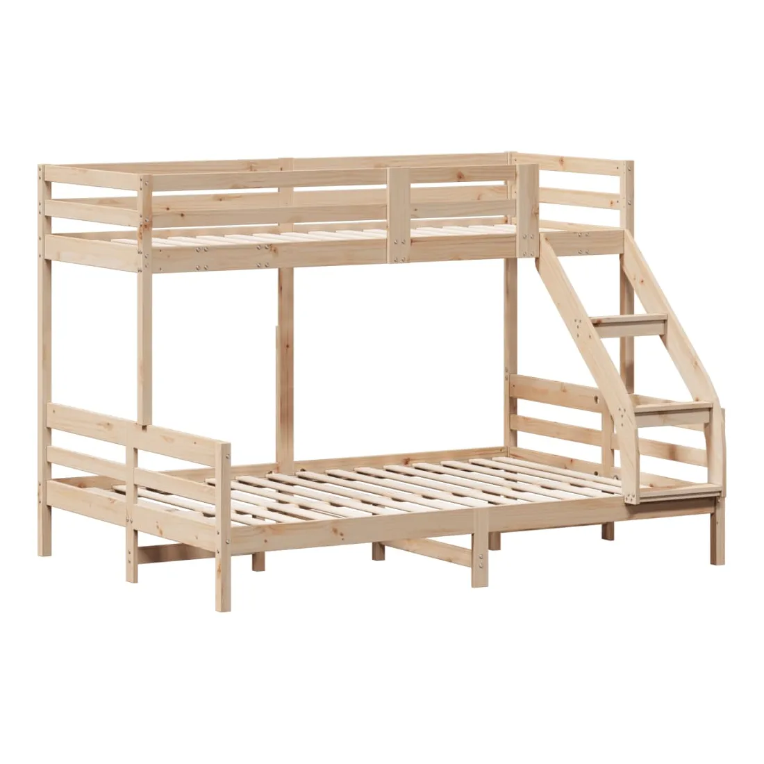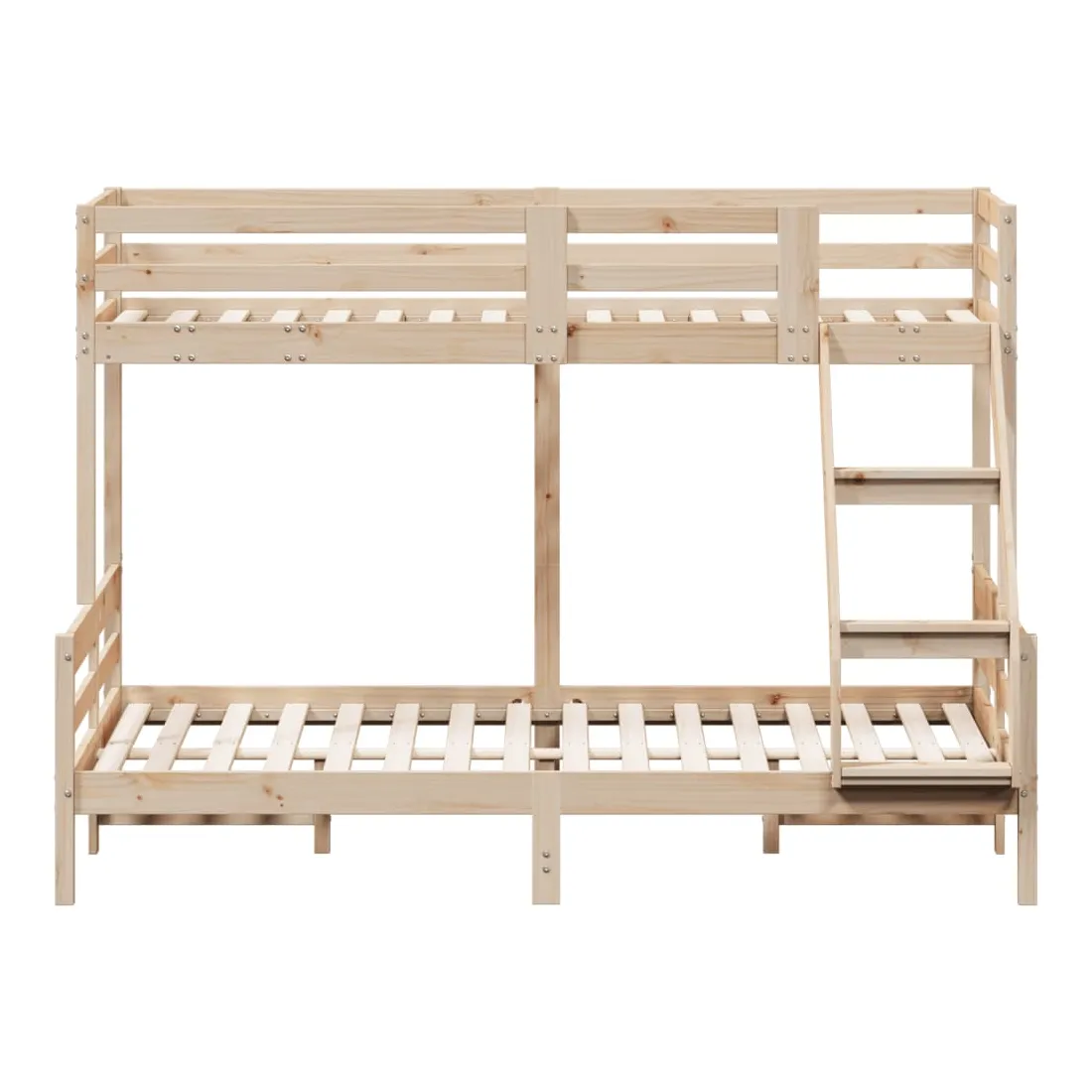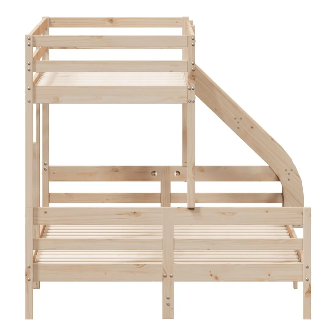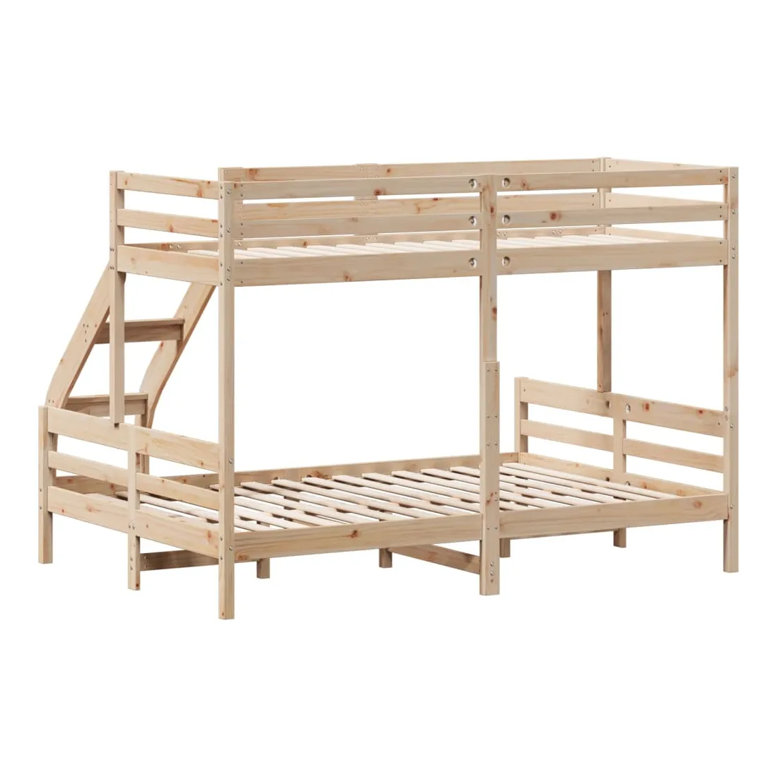 Ce lit superposé en bois est élégant et fonctionnel, ce qui en fait un supplément parfait à toute pièce dont l'espace est limité. Bois de pin massif : le bois de pin massif est un matériau naturel magnifique. Le bois de pin a un grain droit et les nœuds donnent au matériau son aspect caractéristique et rustique.Design sûr : le lit surélevé est conçu dans un souci de sécurité. Il comprend des garde-corps qui empêchent l'utilisateur de rouler pendant son sommeil.Convient aux espaces limités : le cadre de lit est un excellent choix pour toute pièce dont l'espace est limité, il fournit deux lits individuels avec un design compact. Bon à savoir :La livraison comprend uniquement un cadre de lit. Le matelas n'est pas inclus. Vous pouvez consulter notre boutique pour trouver les matelas assortis.