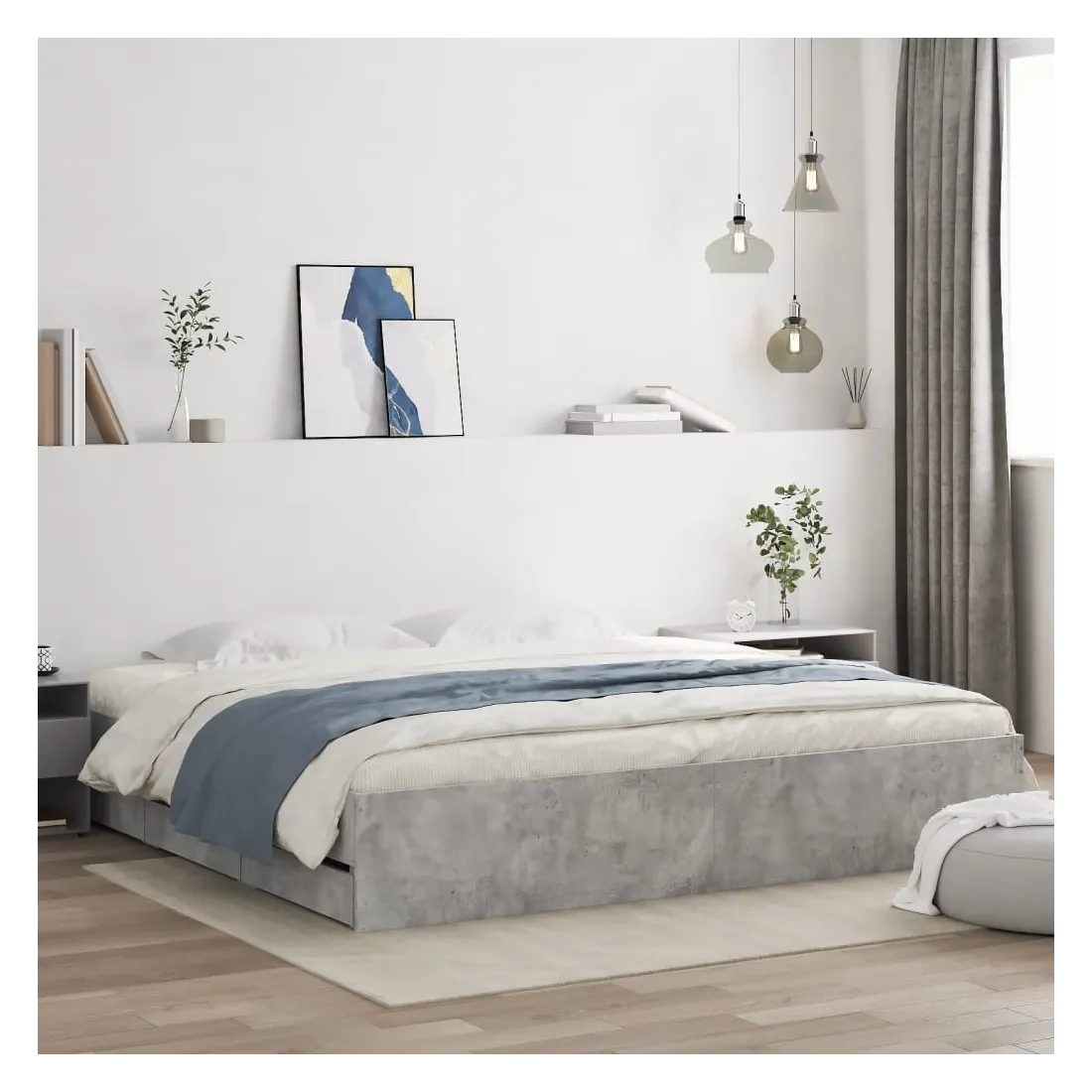 Ajoutez une touche moderne à votre chambre à coucher avec ce cadre de lit avec tiroirs ! Il apportera une touche pratique et décorative à votre espace de vie. Matériau durable : le cadre de lit est fabriquée en bois d'ingénierie. Le bois d'ingénierie est d'une qualité exceptionnelle avec une surface lisse et présente également de la résistance, de la stabilité et de la résistance à l'humidité.Lattes robustes : les lattes de contreplaqué assurent une bonne répartition du poids, garantissant que le matelas reste en place à chaque torsion de votre corps pendant le sommeil.Fonction de rangement : les tiroirs de lit inclus offrent suffisamment d'espace de rangement pour ranger vos articles essentiels, gardant votre pièce propre et bien rangée. Bon à savoir :Un matelas n'est pas inclus avec ce lit. Nous offrons une sélection variée de matelas. Vous pouvez consulter notre boutique pour trouver un matelas assorti.