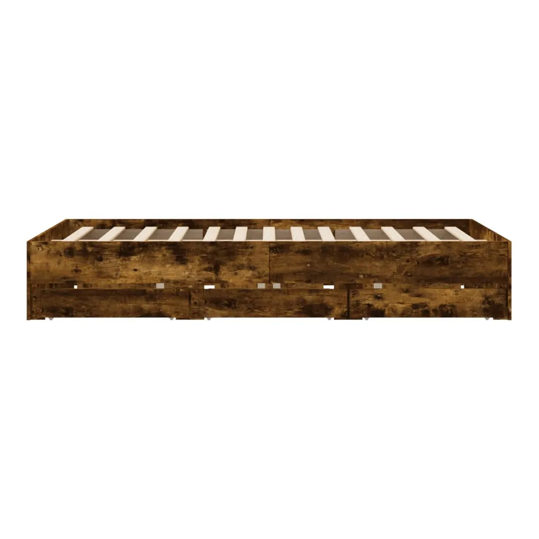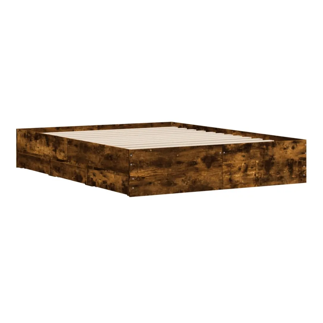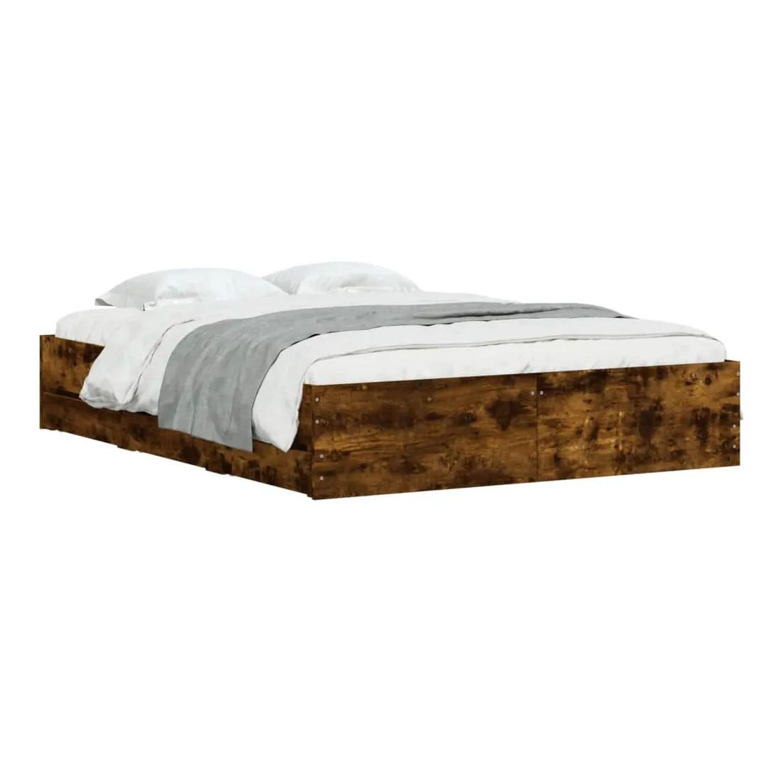 Ajoutez une touche moderne à votre chambre à coucher avec ce cadre de lit avec tiroirs ! Il apportera une touche pratique et décorative à votre espace de vie. Matériau durable : le cadre de lit est fabriquée en bois d'ingénierie. Le bois d'ingénierie est d'une qualité exceptionnelle avec une surface lisse et présente également de la résistance, de la stabilité et de la résistance à l'humidité.Lattes robustes : les lattes de contreplaqué assurent une bonne répartition du poids, garantissant que le matelas reste en place à chaque torsion de votre corps pendant le sommeil.Fonction de rangement : les tiroirs de lit inclus offrent suffisamment d'espace de rangement pour ranger vos articles essentiels, gardant votre pièce propre et bien rangée. Bon à savoir :Un matelas n'est pas inclus avec ce lit. Nous offrons une sélection variée de matelas. Vous pouvez consulter notre boutique pour trouver un matelas assorti.