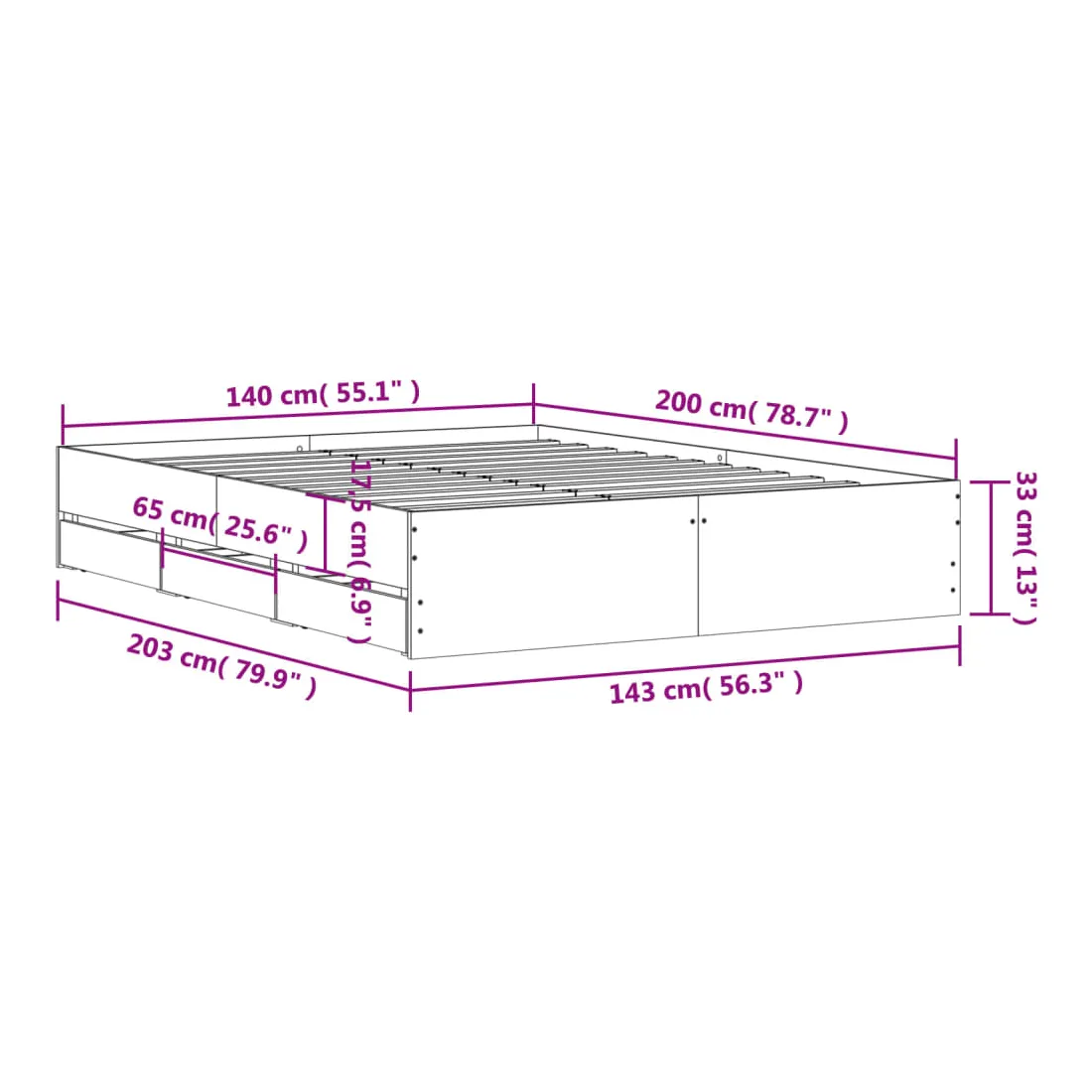 - Dimensions du matelas correspondant : 140 x 200 cm (l x L) (matelas non inclus)