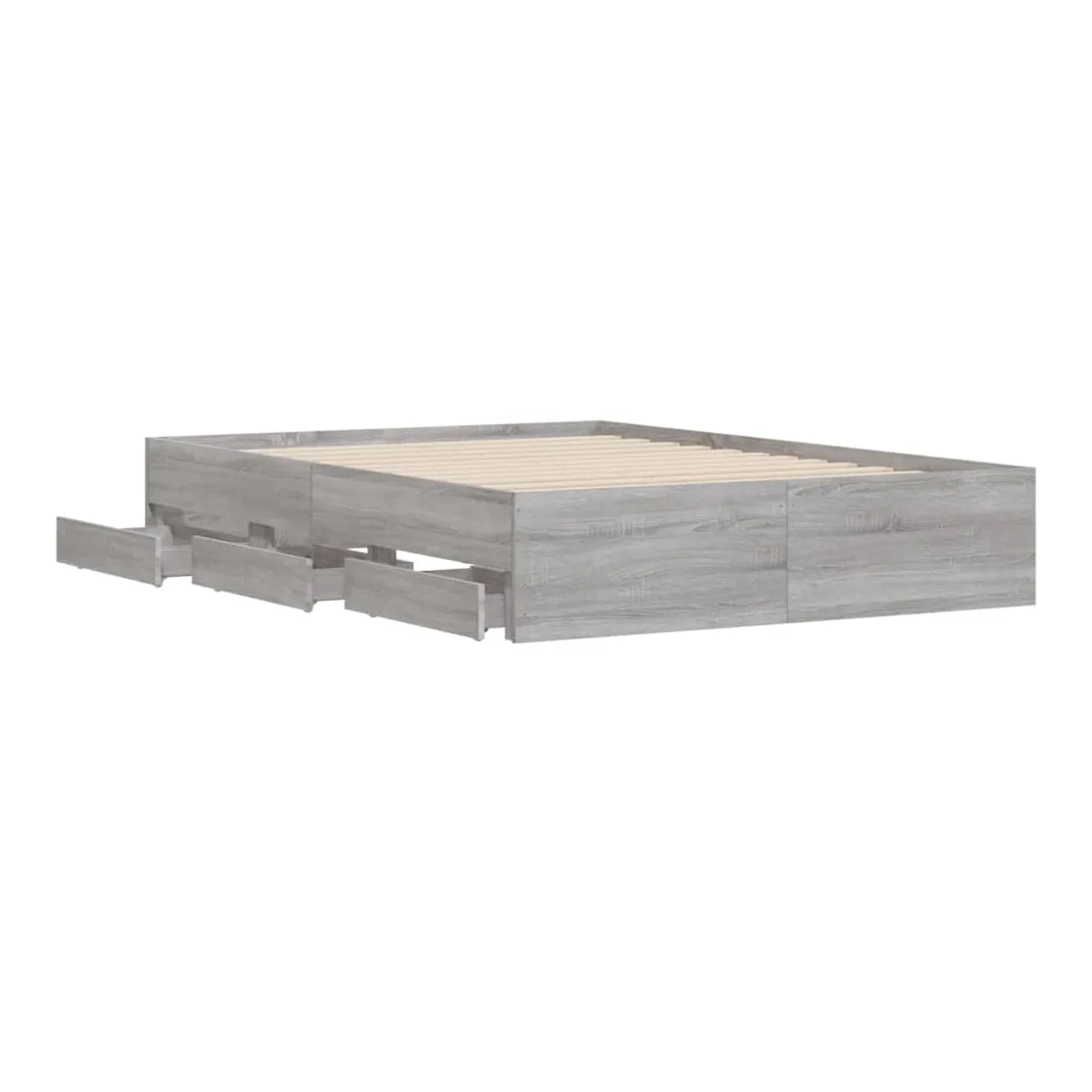 Ajoutez une touche moderne à votre chambre à coucher avec ce cadre de lit avec tiroirs ! Il apportera une touche pratique et décorative à votre espace de vie. Matériau durable : le cadre de lit est fabriquée en bois d'ingénierie. Le bois d'ingénierie est d'une qualité exceptionnelle avec une surface lisse et présente également de la résistance, de la stabilité et de la résistance à l'humidité.Lattes robustes : les lattes de contreplaqué assurent une bonne répartition du poids, garantissant que le matelas reste en place à chaque torsion de votre corps pendant le sommeil.Fonction de rangement : les tiroirs de lit inclus offrent suffisamment d'espace de rangement pour ranger vos articles essentiels, gardant votre pièce propre et bien rangée. Bon à savoir :Un matelas n'est pas inclus avec ce lit. Nous offrons une sélection variée de matelas. Vous pouvez consulter notre boutique pour trouver un matelas assorti.