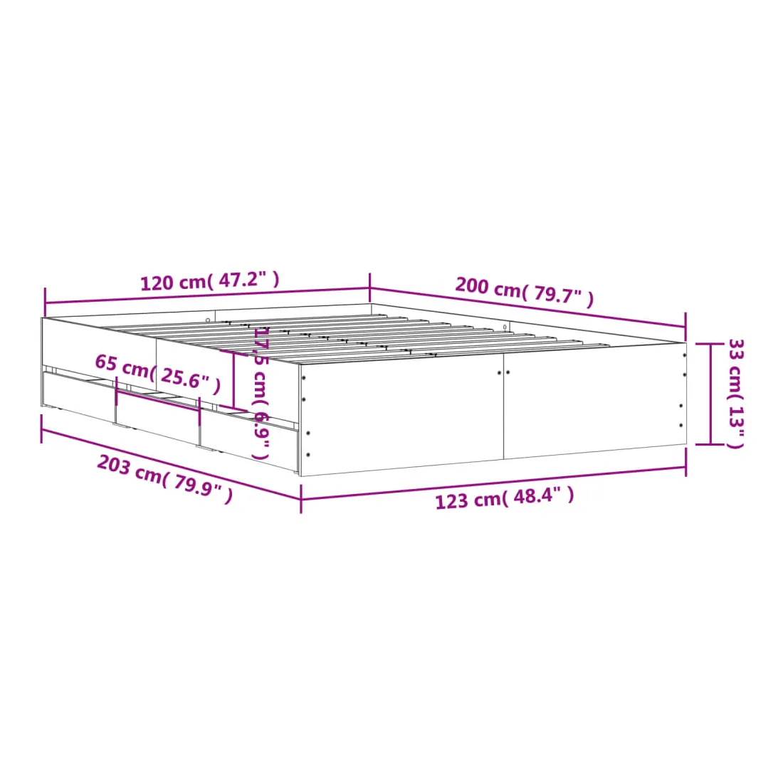 Cadre de lit avec tiroirs sans matelas chêne marron 120x200 cm