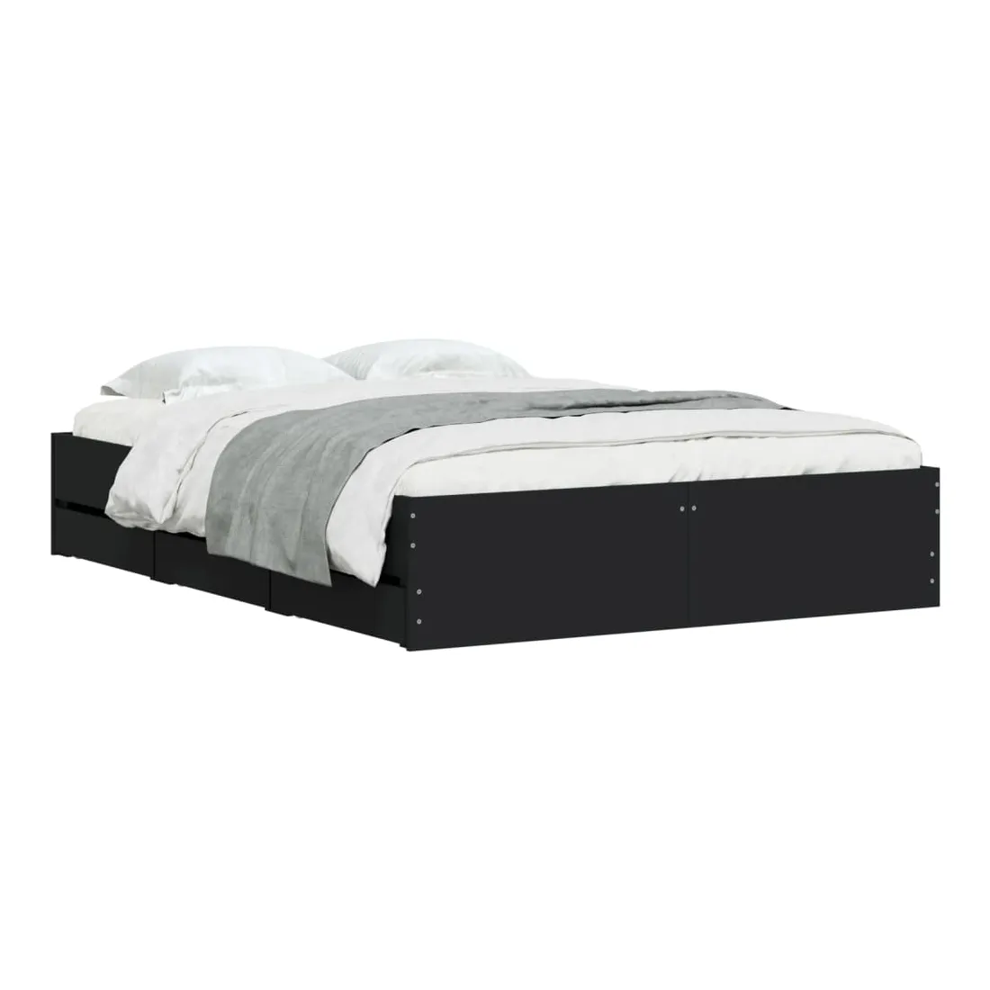 Ajoutez une touche moderne à votre chambre à coucher avec ce cadre de lit avec tiroirs ! Il apportera une touche pratique et décorative à votre espace de vie. Matériau durable : le cadre de lit est fabriquée en bois d'ingénierie. Le bois d'ingénierie est d'une qualité exceptionnelle avec une surface lisse et présente également de la résistance, de la stabilité et de la résistance à l'humidité.Lattes robustes : les lattes de contreplaqué assurent une bonne répartition du poids, garantissant que le matelas reste en place à chaque torsion de votre corps pendant le sommeil.Fonction de rangement : les tiroirs de lit inclus offrent suffisamment d'espace de rangement pour ranger vos articles essentiels, gardant votre pièce propre et bien rangée. Bon à savoir :Un matelas n'est pas inclus avec ce lit. Nous offrons une sélection variée de matelas. Vous pouvez consulter notre boutique pour trouver un matelas assorti.