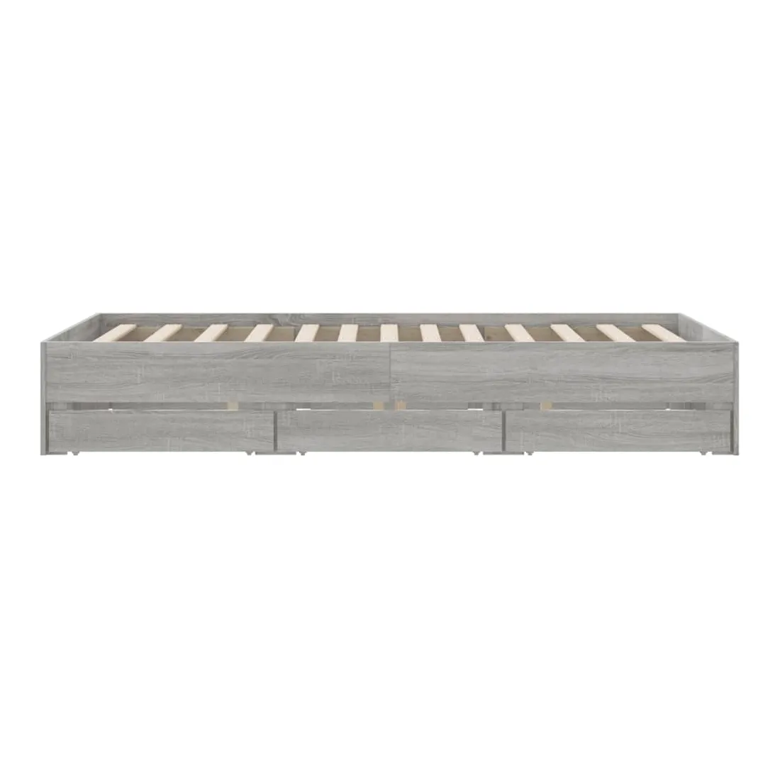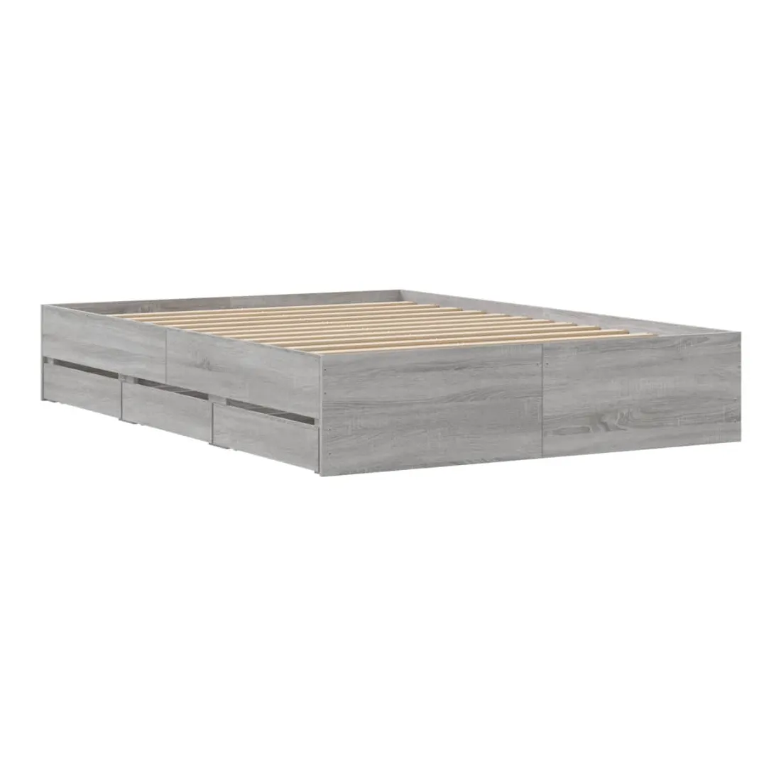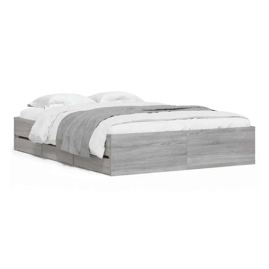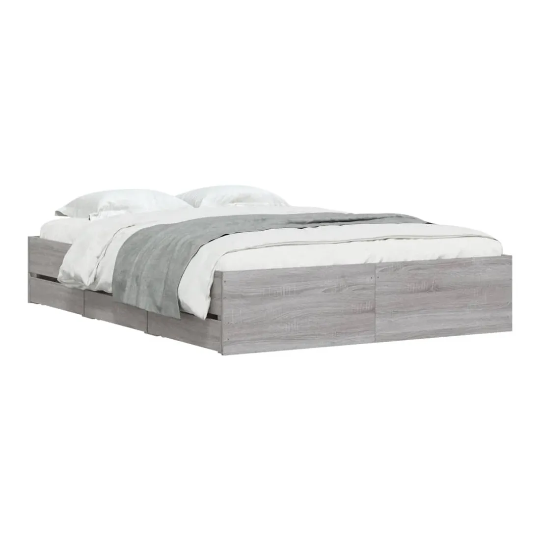 Ajoutez une touche moderne à votre chambre à coucher avec ce cadre de lit avec tiroirs ! Il apportera une touche pratique et décorative à votre espace de vie. Matériau durable : le cadre de lit est fabriquée en bois d'ingénierie. Le bois d'ingénierie est d'une qualité exceptionnelle avec une surface lisse et présente également de la résistance, de la stabilité et de la résistance à l'humidité.Lattes robustes : les lattes de contreplaqué assurent une bonne répartition du poids, garantissant que le matelas reste en place à chaque torsion de votre corps pendant le sommeil.Fonction de rangement : les tiroirs de lit inclus offrent suffisamment d'espace de rangement pour ranger vos articles essentiels, gardant votre pièce propre et bien rangée. Bon à savoir :Un matelas n'est pas inclus avec ce lit. Nous offrons une sélection variée de matelas. Vous pouvez consulter notre boutique pour trouver un matelas assorti.