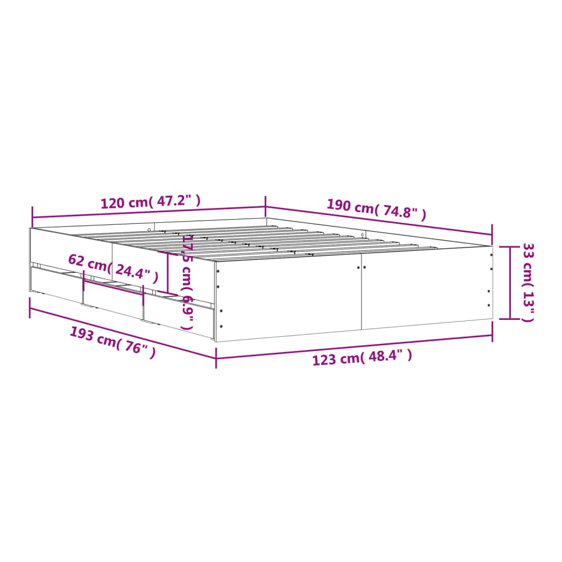 - Dimensions totales : 193 x 123 x 33 cm (L x l x H)