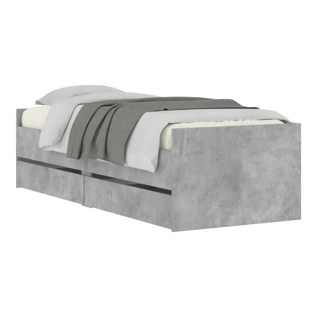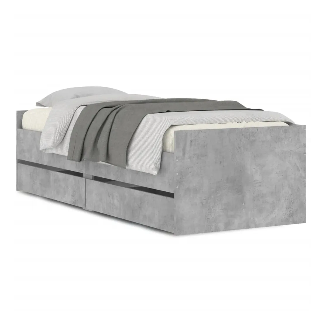 Cadre de lit avec tiroirs sans matelas gris béton 100x200 cm