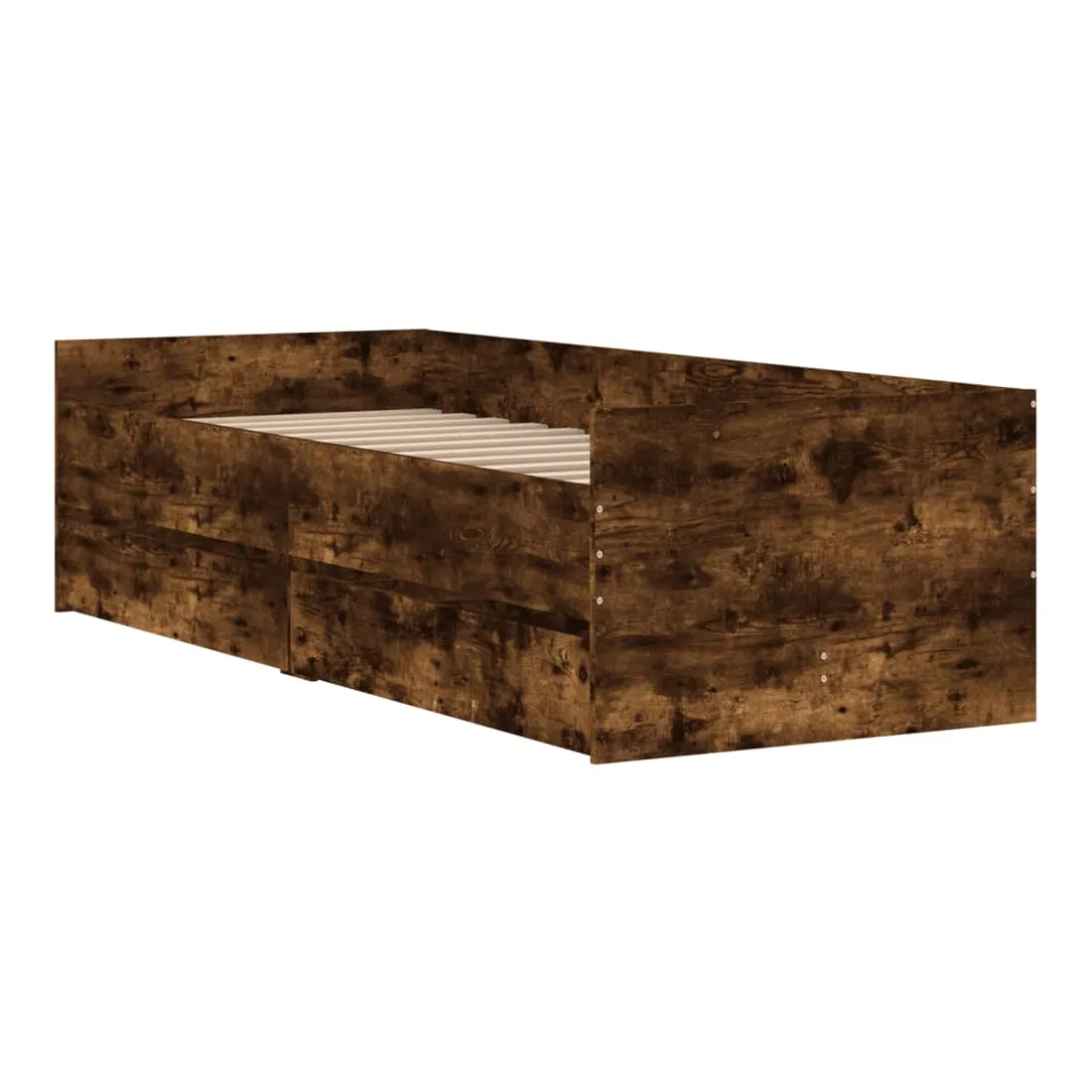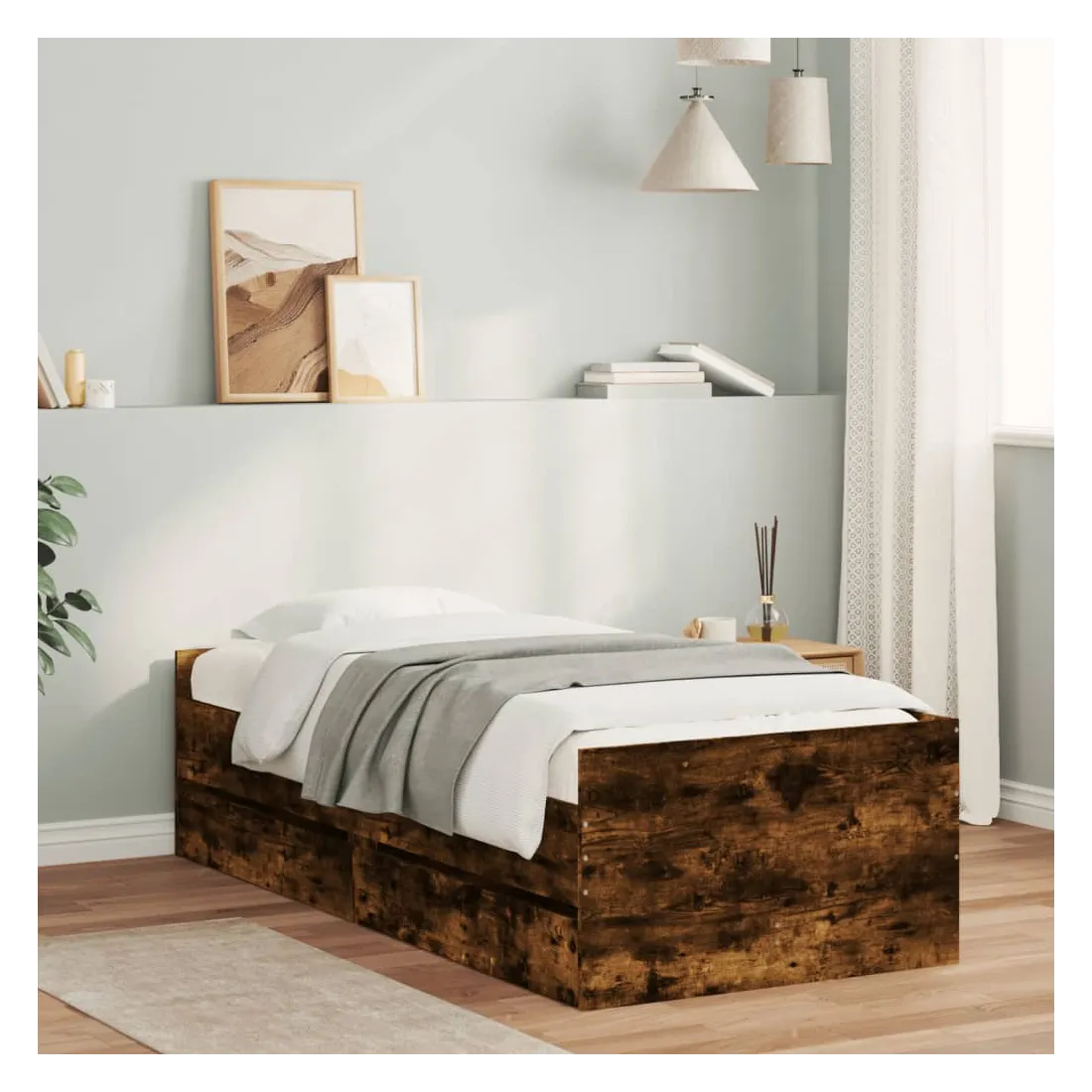 Ajoutez une touche moderne à votre chambre à coucher avec ce cadre de lit avec tiroirs ! Il apportera une touche pratique et décorative à votre espace de vie. Matériau durable : le cadre de lit est fabriquée en bois d'ingénierie. Le bois d'ingénierie est d'une qualité exceptionnelle avec une surface lisse et présente également de la résistance, de la stabilité et de la résistance à l'humidité.Lattes robustes : les lattes de contreplaqué assurent une bonne répartition du poids, garantissant que le matelas reste en place à chaque torsion de votre corps pendant le sommeil.Fonction de rangement : les tiroirs de lit inclus offrent suffisamment d'espace de rangement pour ranger vos articles essentiels, gardant votre pièce propre et bien rangée. Bon à savoir :Un matelas n'est pas inclus avec ce lit. Nous offrons une sélection variée de matelas. Vous pouvez consulter notre boutique pour trouver un matelas assorti.