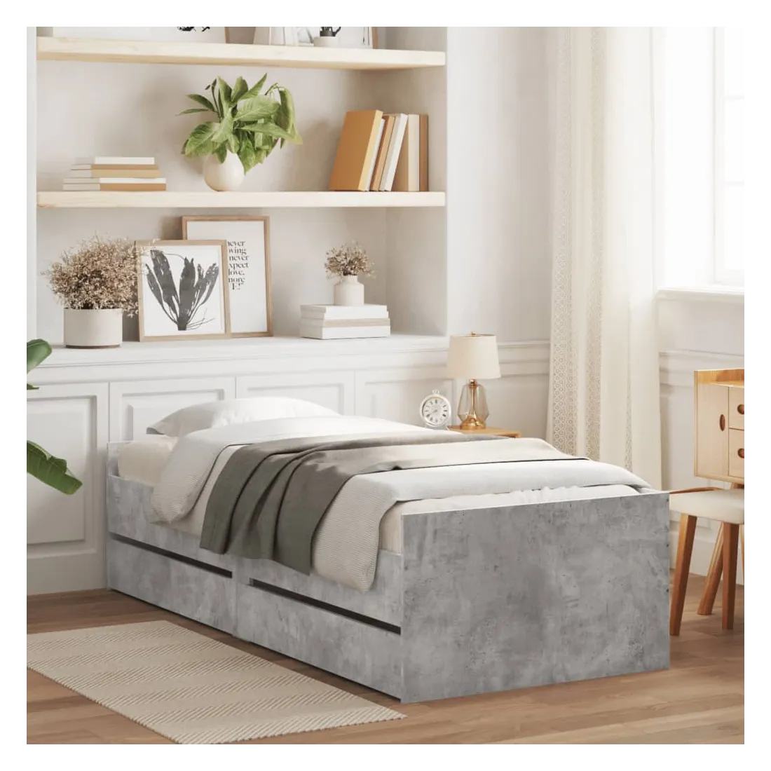 Ajoutez une touche moderne à votre chambre à coucher avec ce cadre de lit avec tiroirs ! Il apportera une touche pratique et décorative à votre espace de vie. Matériau durable : le cadre de lit est fabriquée en bois d'ingénierie. Le bois d'ingénierie est d'une qualité exceptionnelle avec une surface lisse et présente également de la résistance, de la stabilité et de la résistance à l'humidité.Lattes robustes : les lattes de contreplaqué assurent une bonne répartition du poids, garantissant que le matelas reste en place à chaque torsion de votre corps pendant le sommeil.Fonction de rangement : les tiroirs de lit inclus offrent suffisamment d'espace de rangement pour ranger vos articles essentiels, gardant votre pièce propre et bien rangée. Bon à savoir :Un matelas n'est pas inclus avec ce lit. Nous offrons une sélection variée de matelas. Vous pouvez consulter notre boutique pour trouver un matelas assorti.