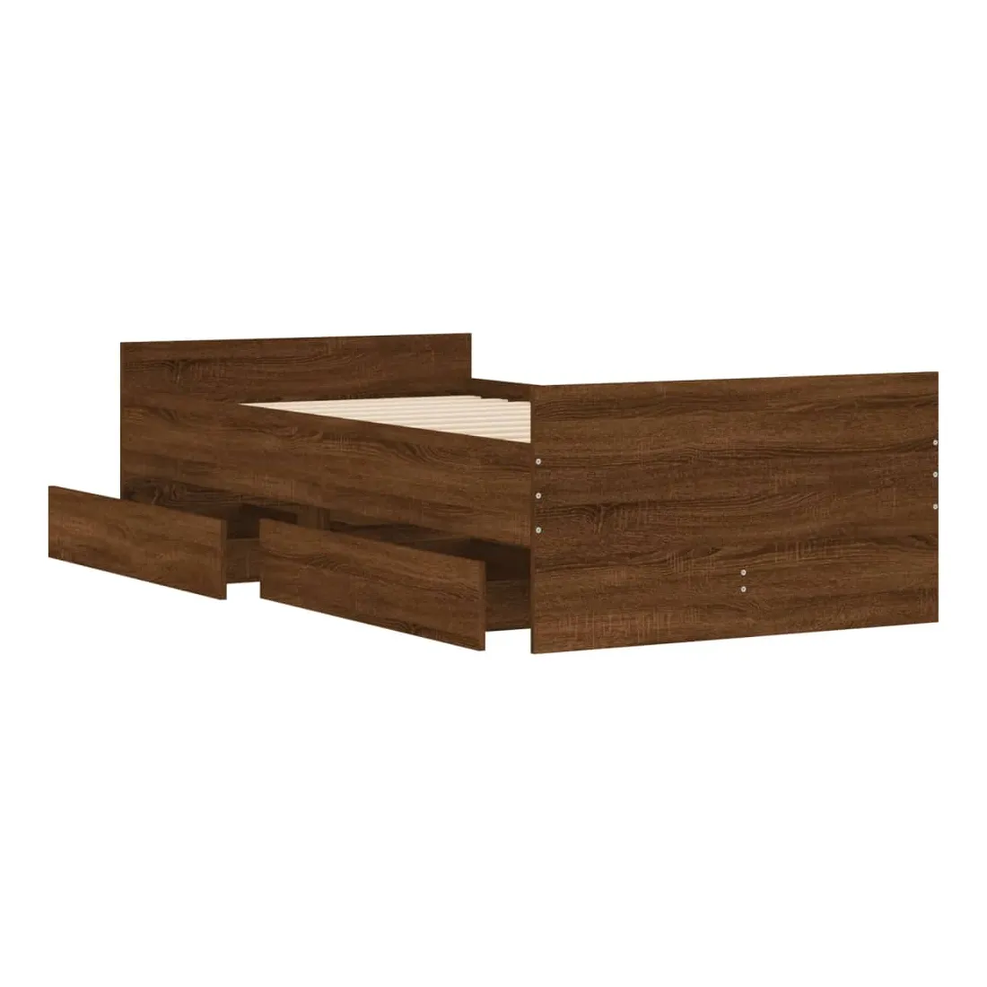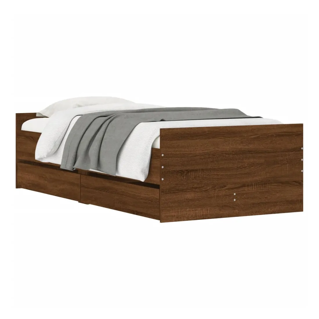 Ajoutez une touche moderne à votre chambre à coucher avec ce cadre de lit avec tiroirs ! Il apportera une touche pratique et décorative à votre espace de vie. Matériau durable : le cadre de lit est fabriquée en bois d'ingénierie. Le bois d'ingénierie est d'une qualité exceptionnelle avec une surface lisse et présente également de la résistance, de la stabilité et de la résistance à l'humidité.Lattes robustes : les lattes de contreplaqué assurent une bonne répartition du poids, garantissant que le matelas reste en place à chaque torsion de votre corps pendant le sommeil.Fonction de rangement : les tiroirs de lit inclus offrent suffisamment d'espace de rangement pour ranger vos articles essentiels, gardant votre pièce propre et bien rangée. Bon à savoir :Un matelas n'est pas inclus avec ce lit. Nous offrons une sélection variée de matelas. Vous pouvez consulter notre boutique pour trouver un matelas assorti.