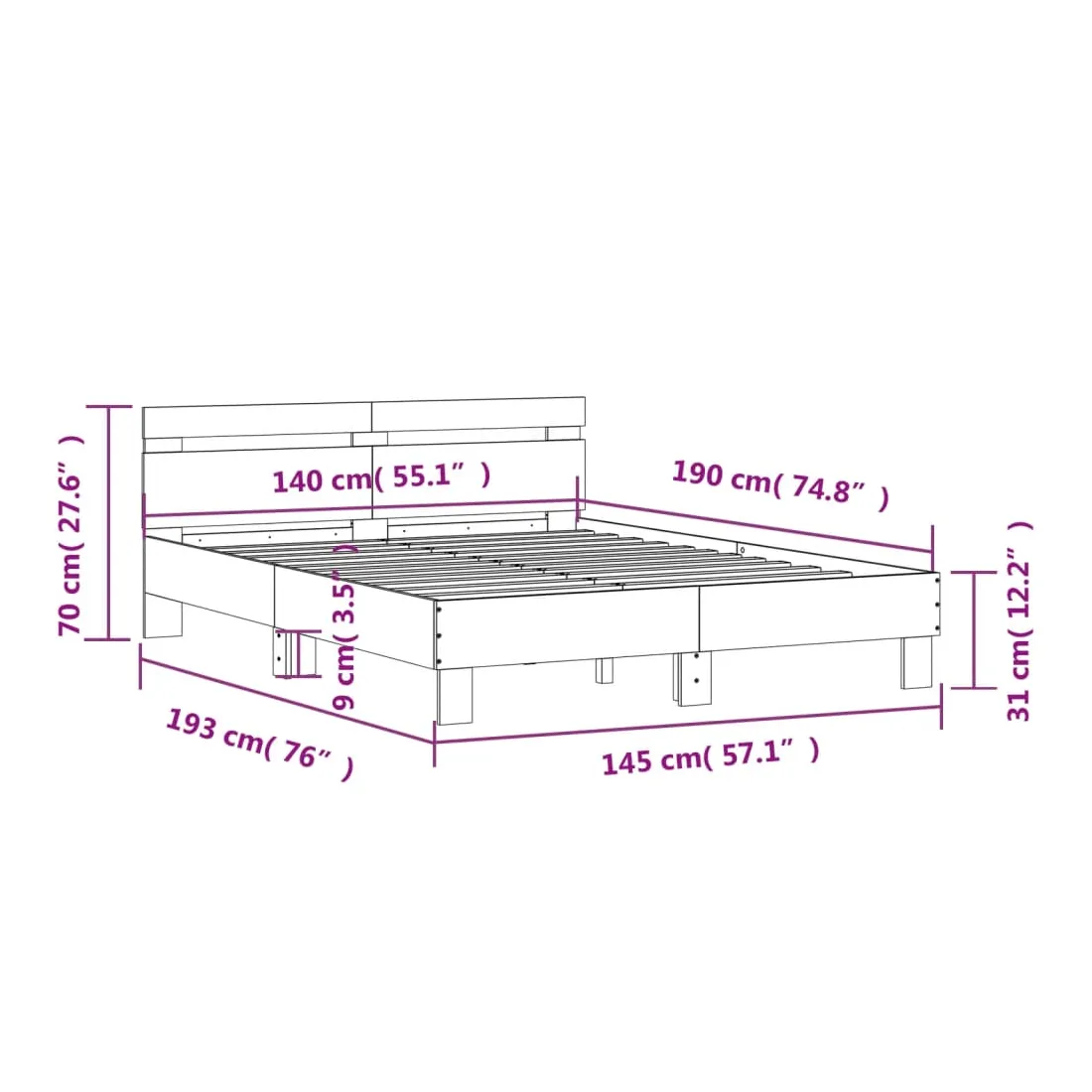 - Dimensions du matelas correspondant : 140 x 190 cm (l x L) (matelas est non inclus)