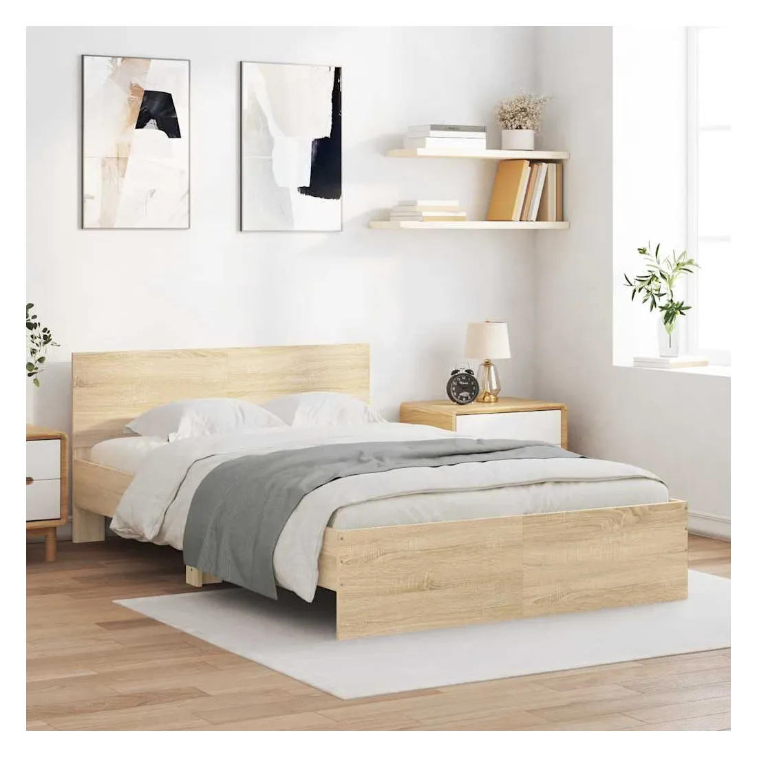 Obtenez une meilleure nuit de sommeil reposante grâce à ce cadre de lit ! Il est un supplément accueillant à toute chambre à coucher. Matériau durable : le bois d'ingénierie est d'une qualité exceptionnelle avec une surface lisse et présente également résistance, stabilité et résistance à l'humidité.Excellent soutien : la tête de lit vous offre un excellent soutien du dos lorsque vous êtes assis dans votre lit pour lire ou regarder la télévision.Lattes robustes : les lattes de contreplaqué assurent une bonne répartition du poids, garantissant que le matelas reste en place à chaque torsion de votre corps pendant le sommeil. Bon à savoir :Un matelas n'est pas inclus avec ce lit. Nous offrons une sélection variée de matelas. Vous pouvez consulter notre boutique pour trouver un matelas assorti.
