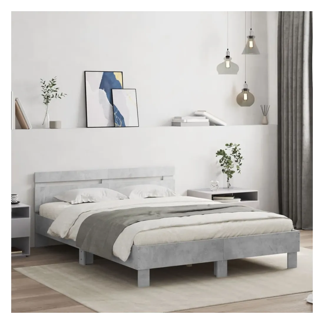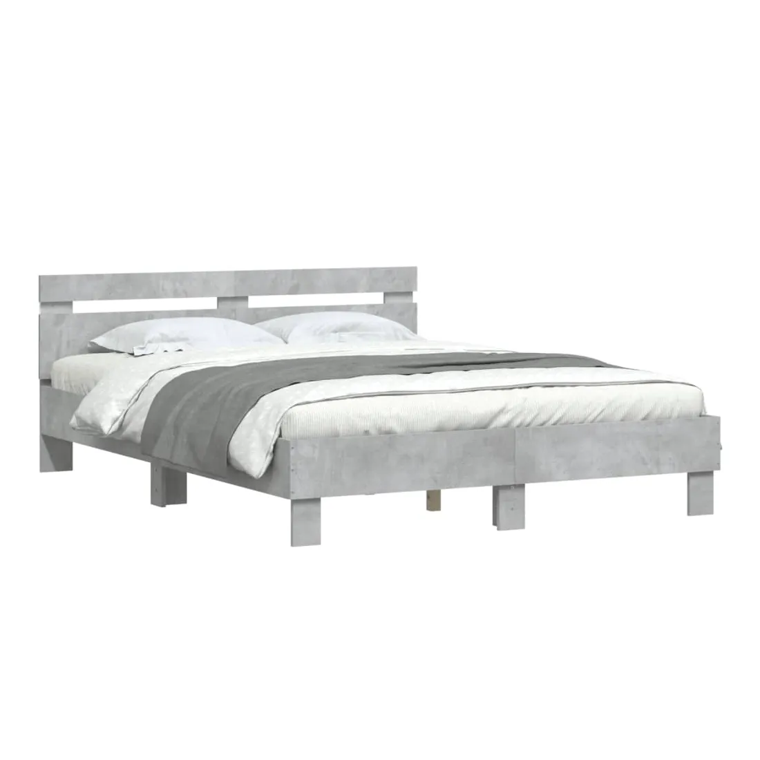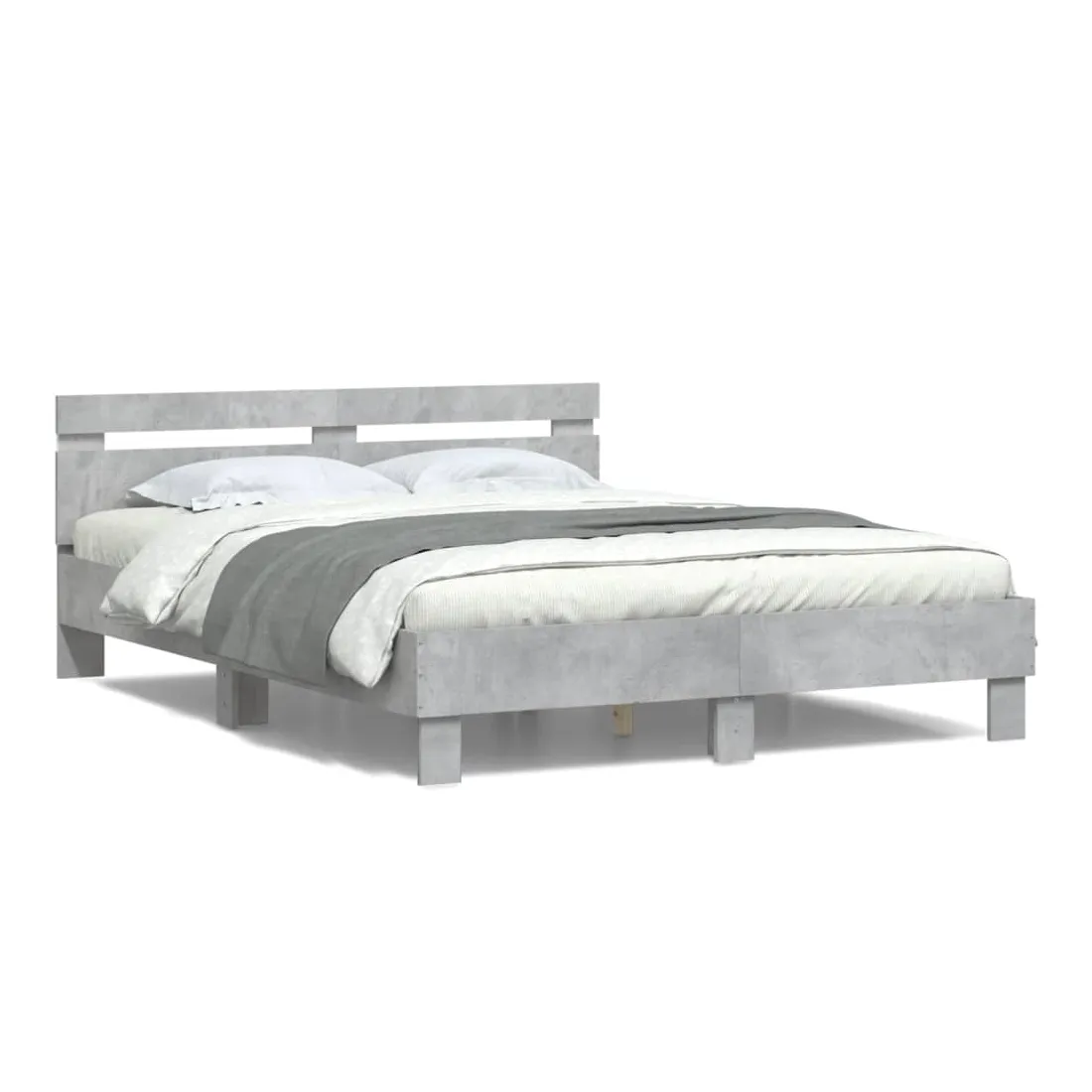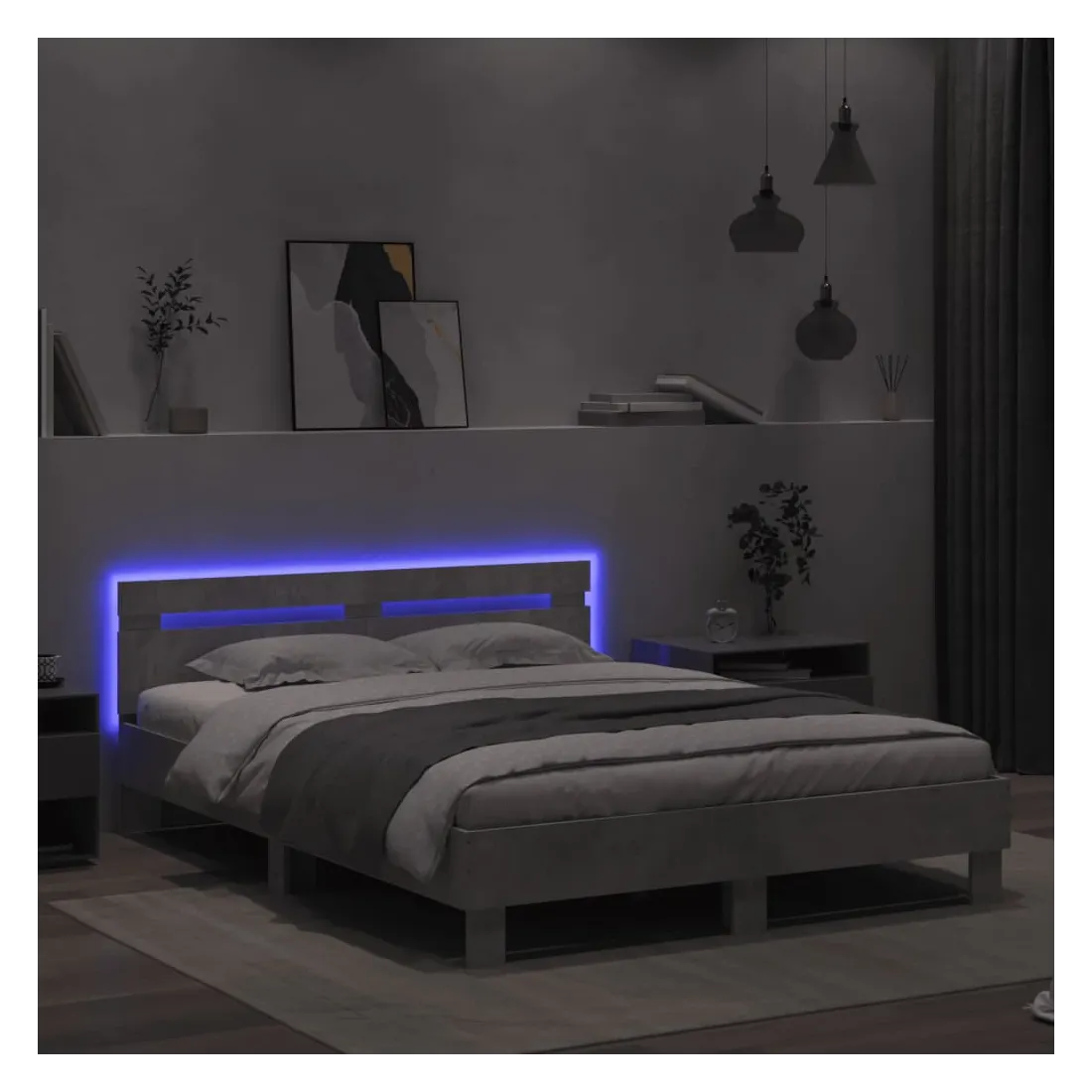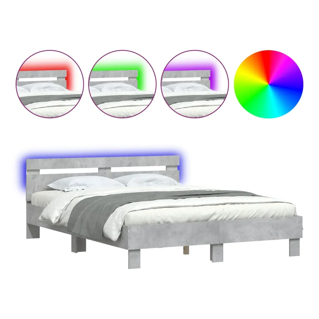 Cadre de lit avec LED sans matelas gris béton 140x200 cm