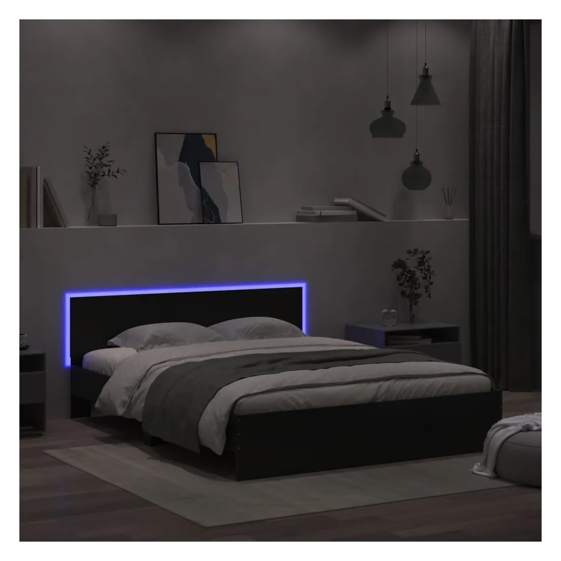 Obtenez une meilleure nuit de sommeil reposante grâce à ce cadre de lit avec LED ! Il est un supplément accueillant à toute chambre à coucher. Matériau durable : le bois d'ingénierie est d'une qualité exceptionnelle avec une surface lisse et présente également résistance, stabilité et résistance à l'humidité.Lumières LED RVB : le lit est équipé de lumières LED RVB vibrantes. Avec divers menus personnalisables, vous pouvez changer sans effort la couleur des lumières et même les régler automatiquement. Ces lumières LED renforcent non seulement l'aspect contemporain du lit, mais ajoutent également à son attrait tendance.Excellent soutien : la tête de lit vous offre un excellent soutien du dos lorsque vous êtes assis dans votre lit pour lire ou regarder la télévision.Lattes robustes : les lattes de contreplaqué assurent une bonne répartition du poids, garantissant que le matelas reste en place à chaque torsion de votre corps pendant le sommeil. Bon à savoir :Un matelas n'est pas inclus avec ce lit. Nous offrons une sélection variée de matelas. Vous pouvez consulter notre boutique pour trouver un matelas assorti.Ce produit est doté d'un connecteur USB qui nécessite une source d'alimentation USB de 5V certifiée (non incluse).