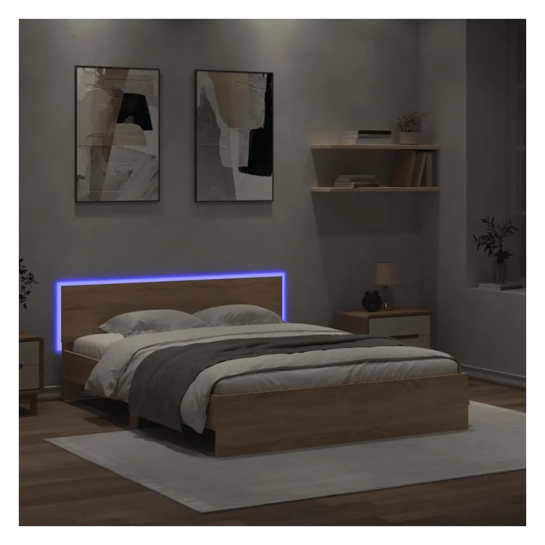Obtenez une meilleure nuit de sommeil reposante grâce à ce cadre de lit avec LED ! Il est un supplément accueillant à toute chambre à coucher. Matériau durable : le bois d'ingénierie est d'une qualité exceptionnelle avec une surface lisse et présente également résistance, stabilité et résistance à l'humidité.Lumières LED RVB : le lit est équipé de lumières LED RVB vibrantes. Avec divers menus personnalisables, vous pouvez changer sans effort la couleur des lumières et même les régler automatiquement. Ces lumières LED renforcent non seulement l'aspect contemporain du lit, mais ajoutent également à son attrait tendance.Excellent soutien : la tête de lit vous offre un excellent soutien du dos lorsque vous êtes assis dans votre lit pour lire ou regarder la télévision.Lattes robustes : les lattes de contreplaqué assurent une bonne répartition du poids, garantissant que le matelas reste en place à chaque torsion de votre corps pendant le sommeil. Bon à savoir :Un matelas n'est pas inclus avec ce lit. Nous offrons une sélection variée de matelas. Vous pouvez consulter notre boutique pour trouver un matelas assorti.Ce produit est doté d'un connecteur USB qui nécessite une source d'alimentation USB de 5V certifiée (non incluse).