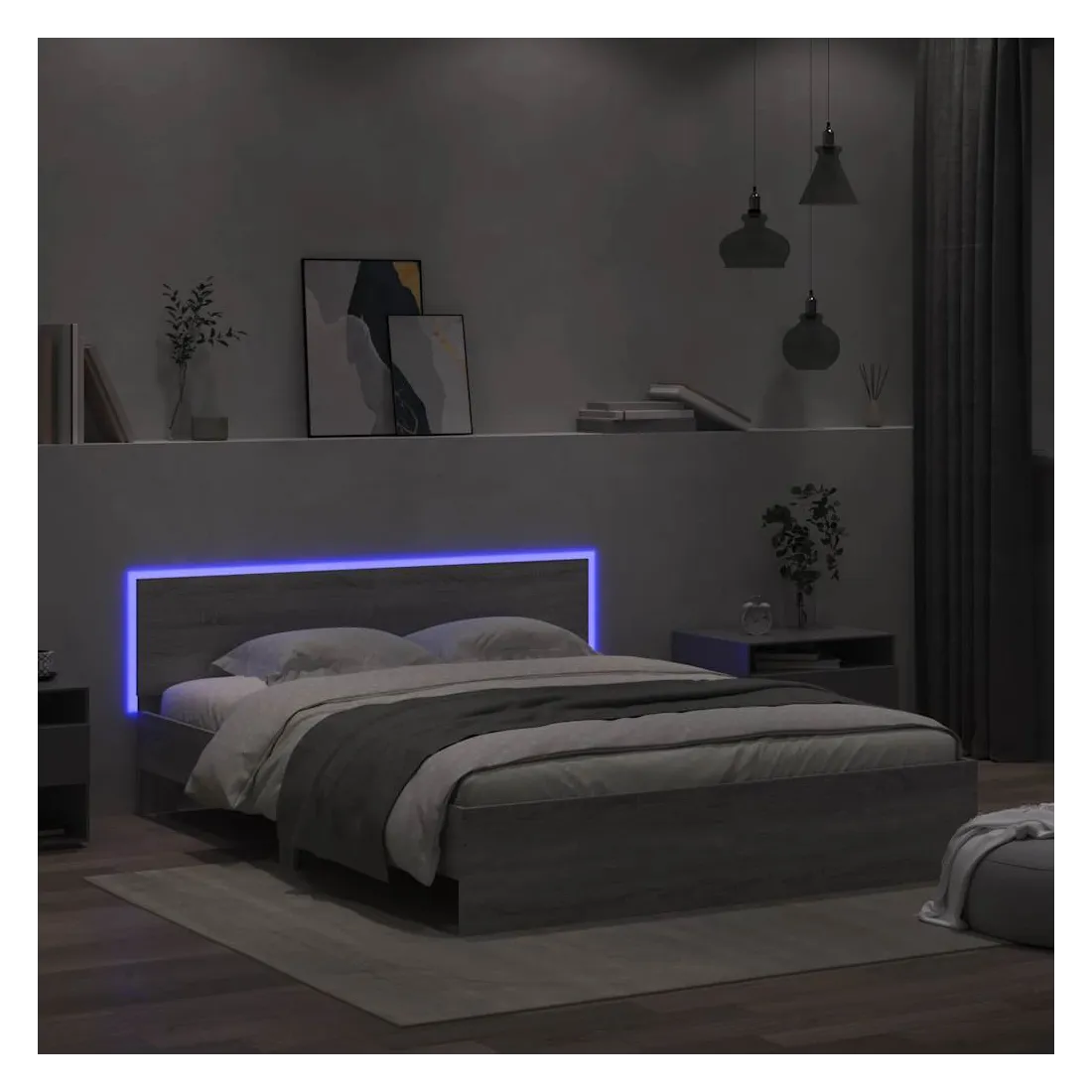 Obtenez une meilleure nuit de sommeil reposante grâce à ce cadre de lit avec LED ! Il est un supplément accueillant à toute chambre à coucher. Matériau durable : le bois d'ingénierie est d'une qualité exceptionnelle avec une surface lisse et présente également résistance, stabilité et résistance à l'humidité.Lumières LED RVB : le lit est équipé de lumières LED RVB vibrantes. Avec divers menus personnalisables, vous pouvez changer sans effort la couleur des lumières et même les régler automatiquement. Ces lumières LED renforcent non seulement l'aspect contemporain du lit, mais ajoutent également à son attrait tendance.Excellent soutien : la tête de lit vous offre un excellent soutien du dos lorsque vous êtes assis dans votre lit pour lire ou regarder la télévision.Lattes robustes : les lattes de contreplaqué assurent une bonne répartition du poids, garantissant que le matelas reste en place à chaque torsion de votre corps pendant le sommeil. Bon à savoir :Un matelas n'est pas inclus avec ce lit. Nous offrons une sélection variée de matelas. Vous pouvez consulter notre boutique pour trouver un matelas assorti.Ce produit est doté d'un connecteur USB qui nécessite une source d'alimentation USB de 5V certifiée (non incluse).