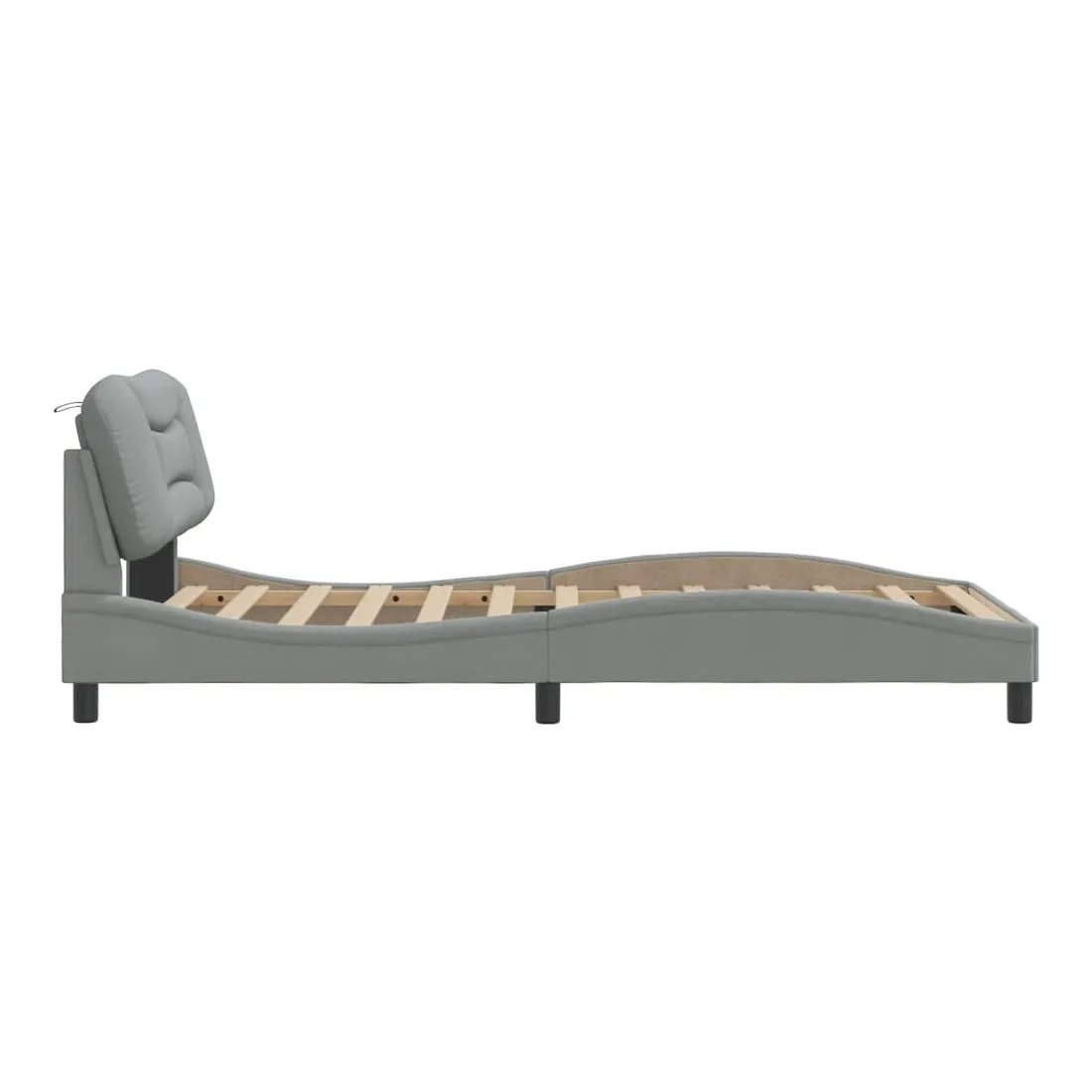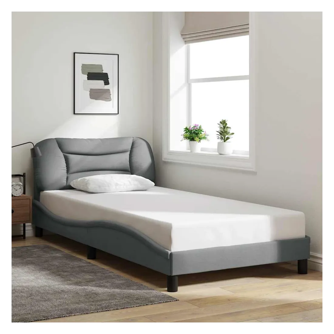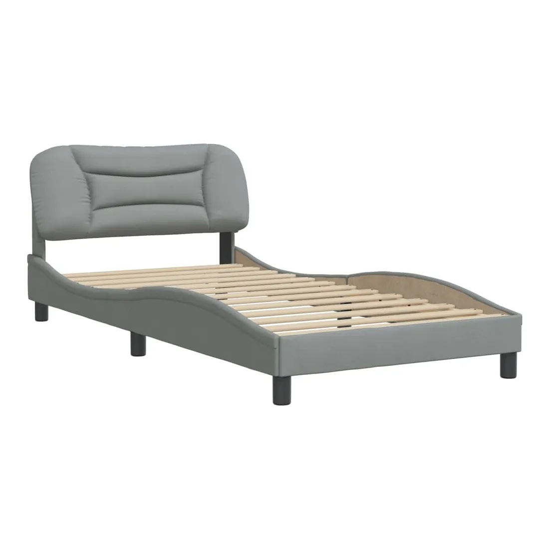 Obtenez une meilleure nuit de sommeil reposante grâce à ce cadre de lit avec tête de lit ! Il est un supplément accueillant à toute chambre à coucher. Tissu durable : le tissu présente un aspect simple et épuré tout en restant respirant, doux pour la peau et durable.Lattes de contreplaqué : les lattes de contreplaqué assurent une bonne répartition du poids, garantissant que le matelas reste en place à chaque torsion de votre corps pendant le sommeil.Excellent soutien : l'oreiller de tête de lit est rembourré avec de la fibre de polypropylène pour un confort ultra doux et optimal vous offre un excellent soutien du dos lorsque vous êtes assis dans votre lit pour lire ou regarder la télévision.Design pratique : le coussin de la tête de lit est doté d'une fermeture à glissière pour faciliter l'installation, et les bandes auto-agrippantes au dos peuvent être utilisées pour fixer les lampes LED.Design latéral ondulé : l’aspect ondulé du cadre de lit est élégant et sophistiqué, ajoutant une touche moderne et élégante à votre décor, ce qui en fait le point central de votre chambre à coucher. Bon à savoir :Un matelas n'est pas inclus avec ce lit. Nous offrons une sélection variée de matelas. Vous pouvez consulter notre boutique pour trouver un matelas assorti.