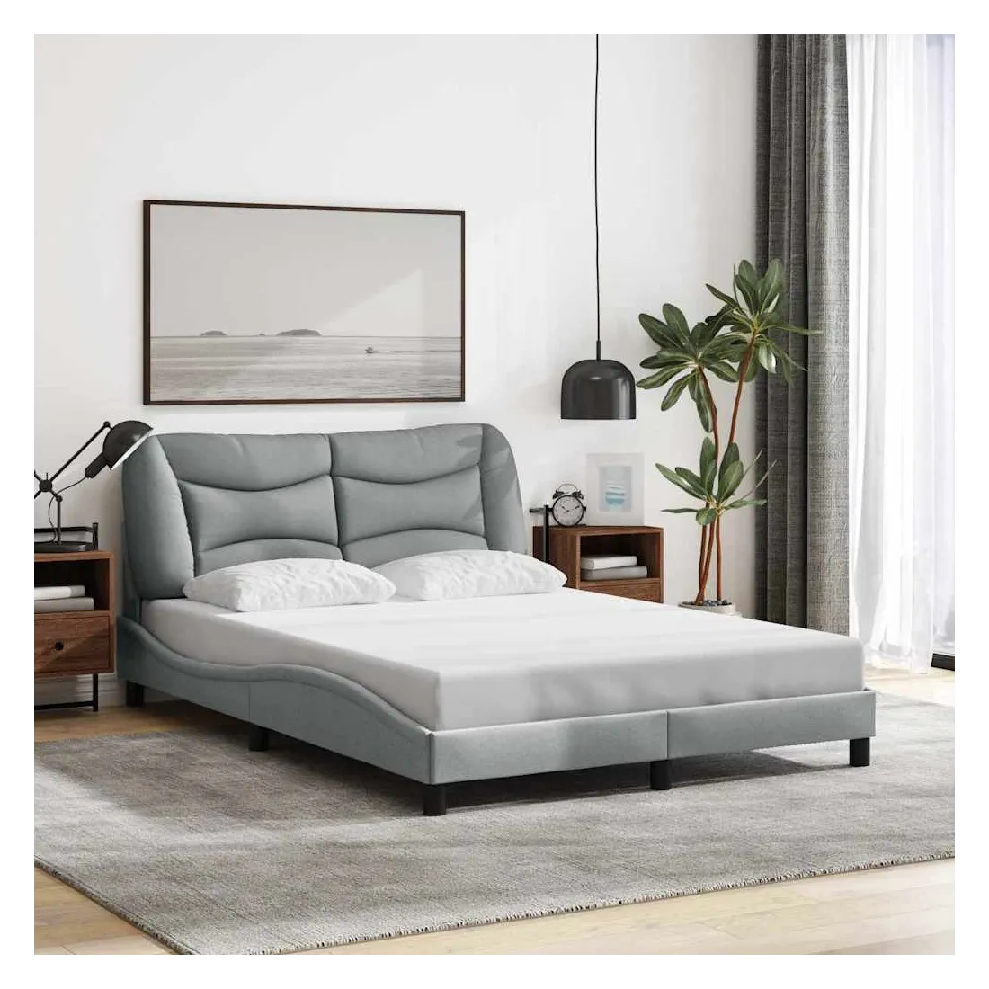 Obtenez une meilleure nuit de sommeil reposante grâce à ce cadre de lit avec tête de lit ! Il est un supplément accueillant à toute chambre à coucher. Tissu durable : le tissu présente un aspect simple et épuré tout en restant respirant, doux pour la peau et durable.Lattes de contreplaqué : les lattes de contreplaqué assurent une bonne répartition du poids, garantissant que le matelas reste en place à chaque torsion de votre corps pendant le sommeil.Excellent soutien : l'oreiller de tête de lit est rembourré avec de la fibre de polypropylène pour un confort ultra doux et optimal vous offre un excellent soutien du dos lorsque vous êtes assis dans votre lit pour lire ou regarder la télévision.Design pratique : le coussin de la tête de lit est doté d'une fermeture à glissière pour faciliter l'installation, et les bandes auto-agrippantes au dos peuvent être utilisées pour fixer les lampes LED.Design latéral ondulé : l’aspect ondulé du cadre de lit est élégant et sophistiqué, ajoutant une touche moderne et élégante à votre décor, ce qui en fait le point central de votre chambre à coucher. Bon à savoir :Un matelas n'est pas inclus avec ce lit. Nous offrons une sélection variée de matelas. Vous pouvez consulter notre boutique pour trouver un matelas assorti.